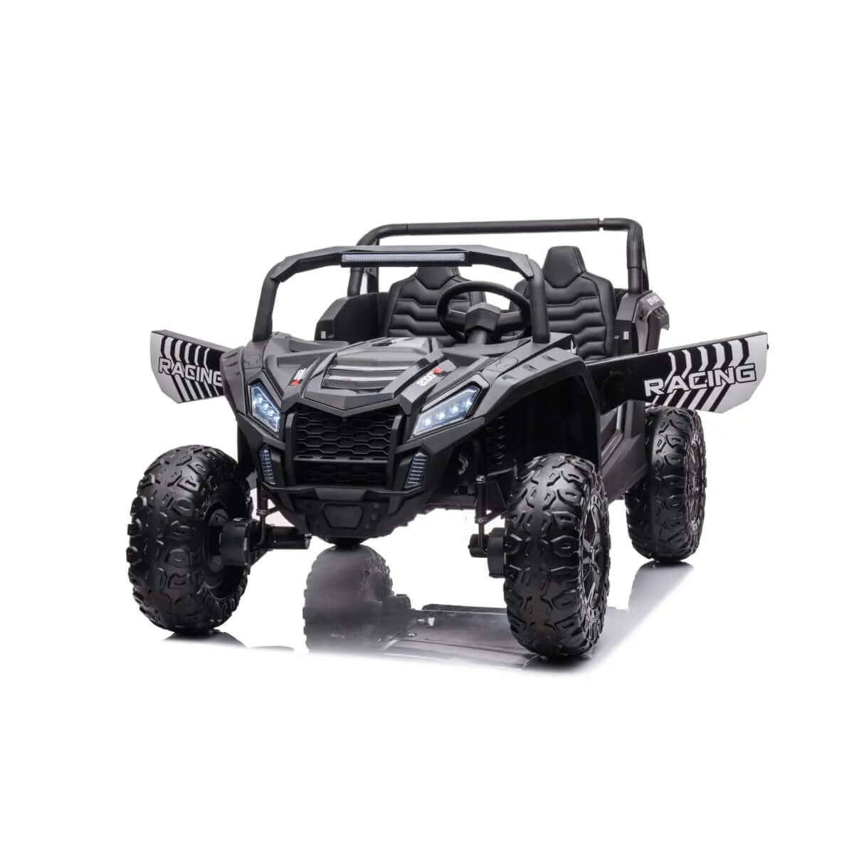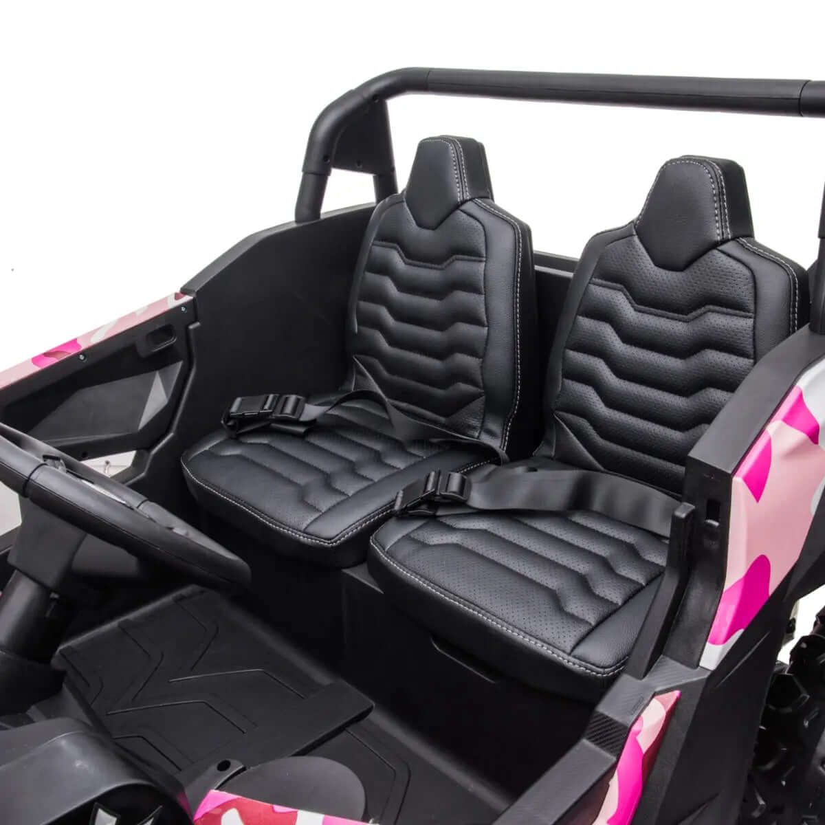 - Thanks to its leather seats, this Ride on Car is comfort on wheels, perfect for intense days of adventures. Its bold design and comfort make this car unique.