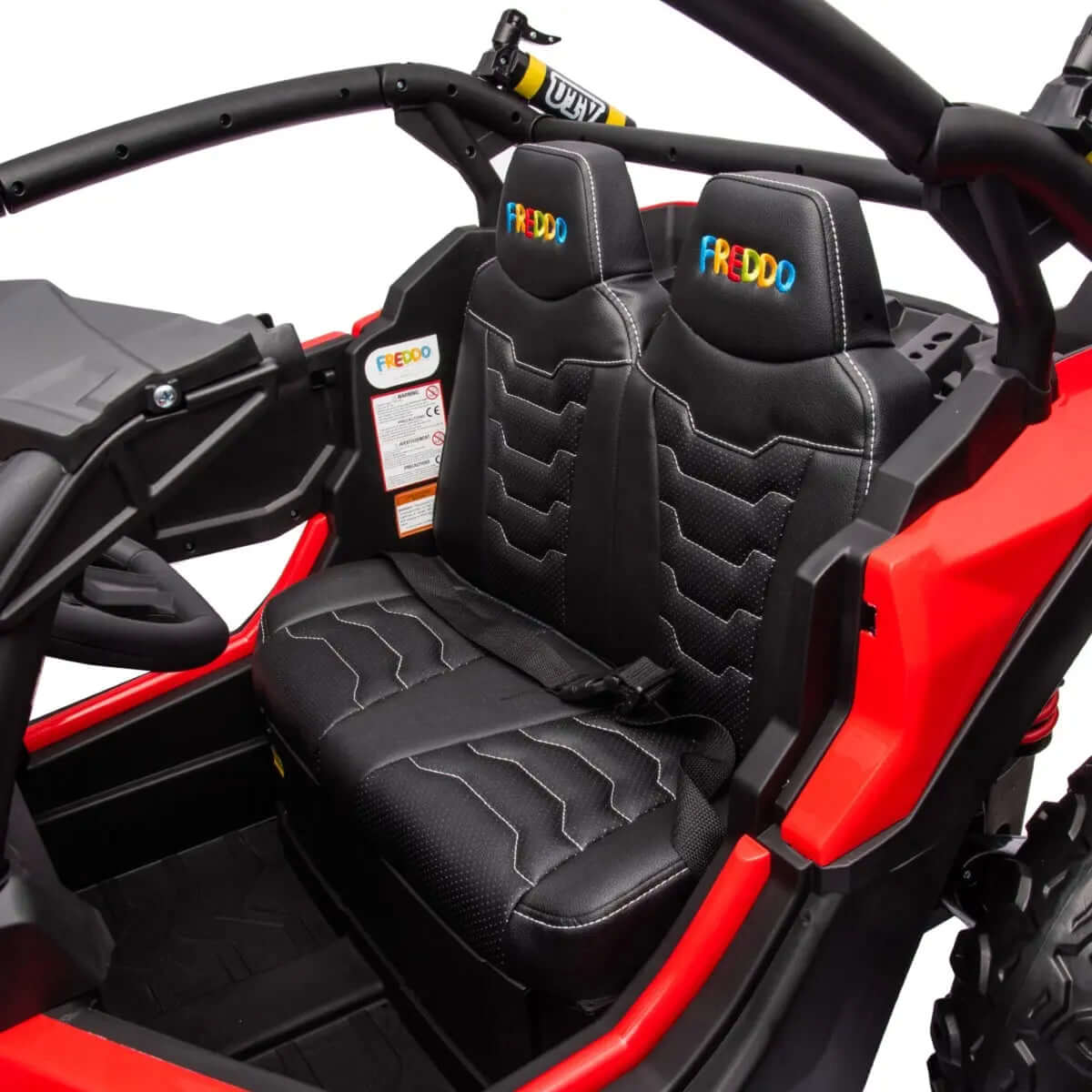 The new UTV 4x4 by Freddo Toys is here to stay! We know you love UTV style cars, and we do too. This 4x4 will bring great and long lasting moments of fun and adventure thanks to its powerful 24V battery and its amazing features like its integrated door opening control or its two different speeds. A super realistic car for kids looking for realistic experiences.