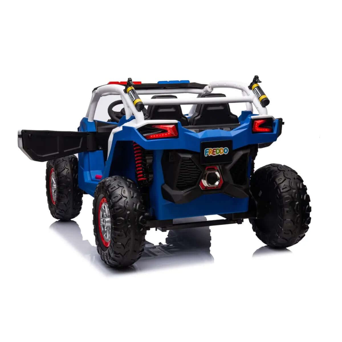 What kid hasn't imagined being a cop and defending the city from crime? Now the Police Truck Ride on Car from Freddo Toys it becomes a UTV and more impressive. Front and rear police lights, rear suspension, high and low speed, four motors and a jaw-dropping design are some of the features of our new product.