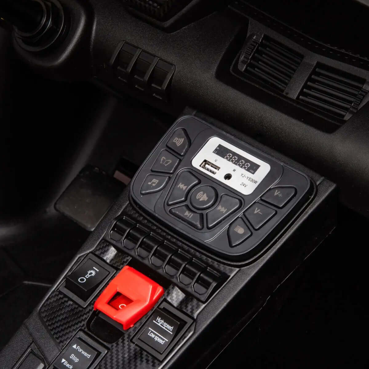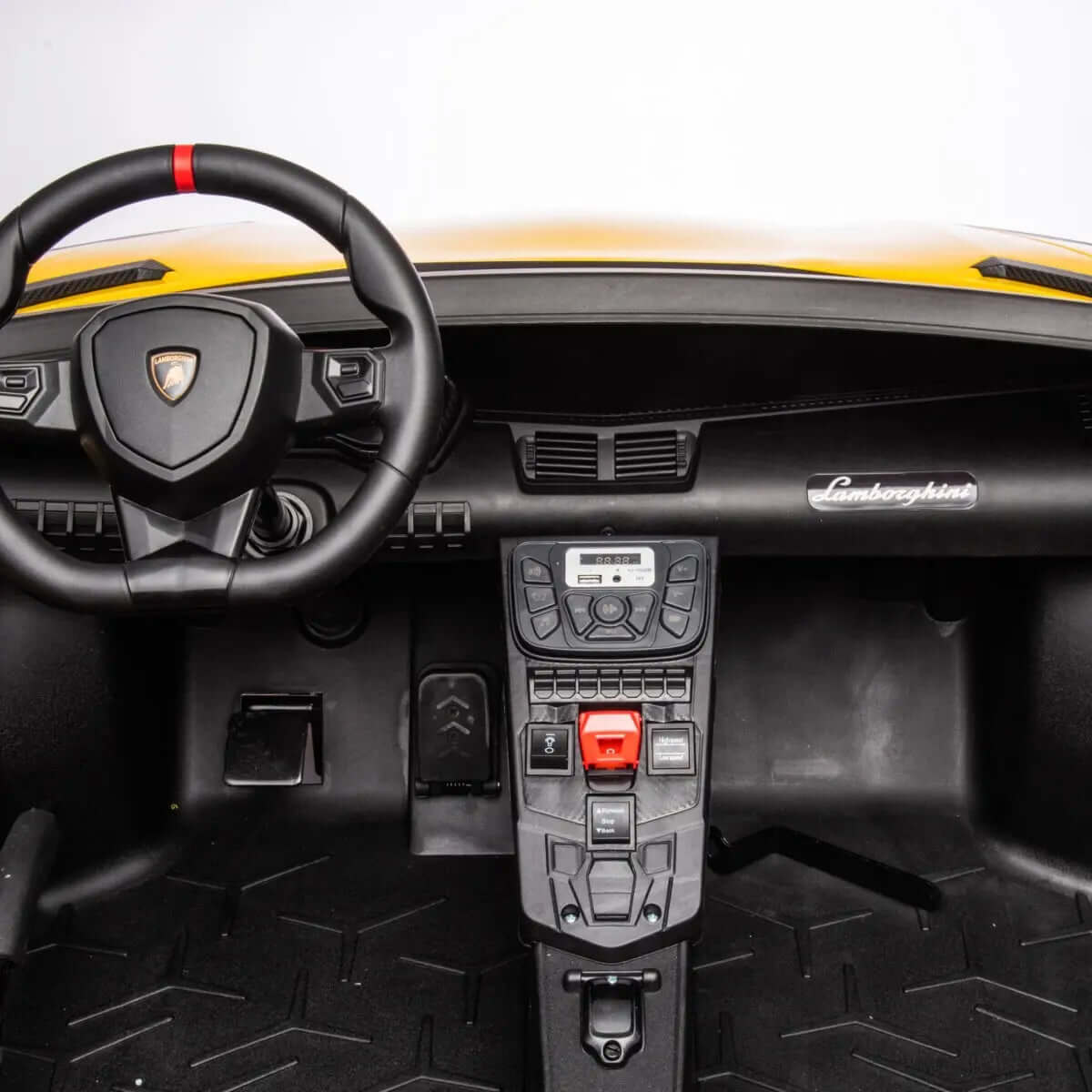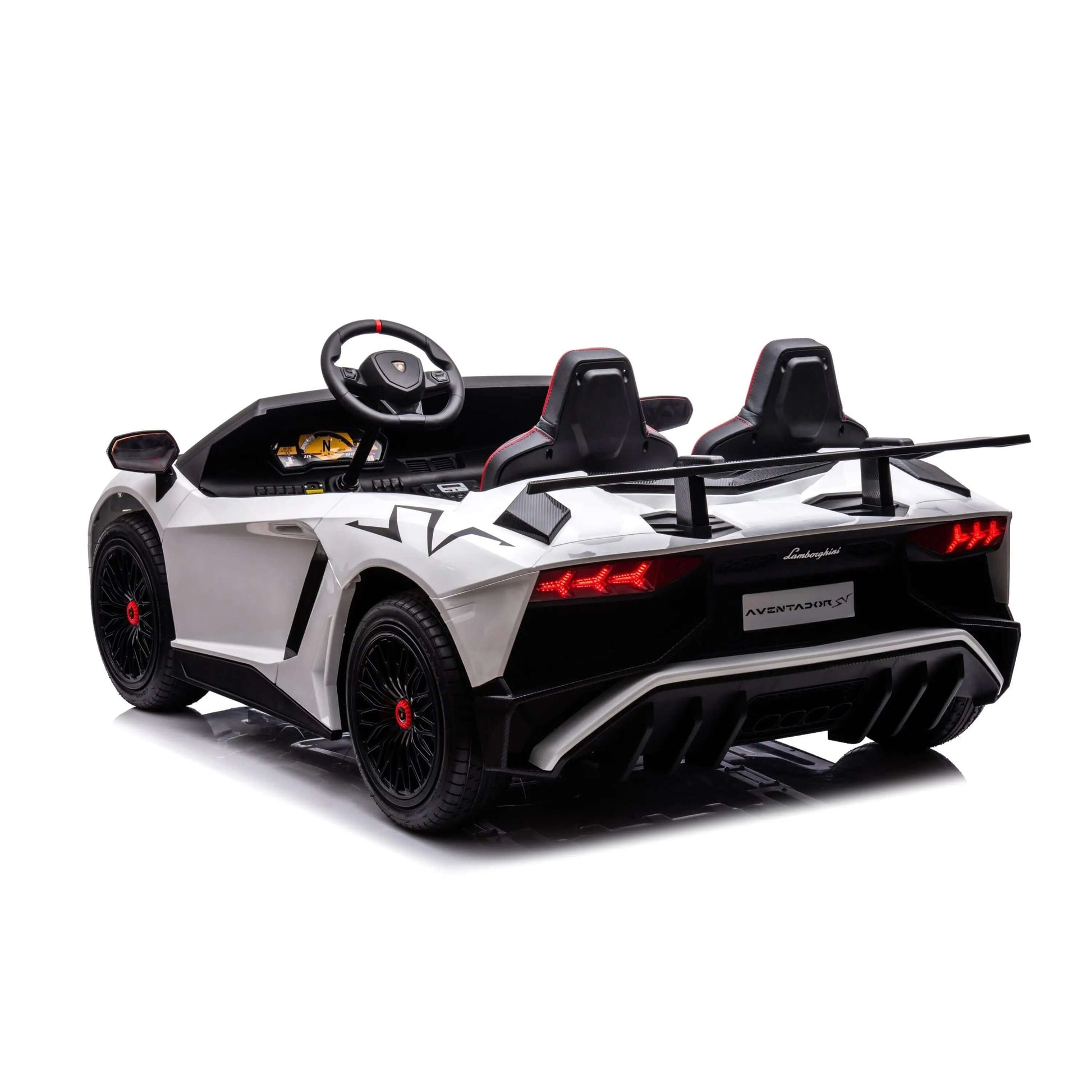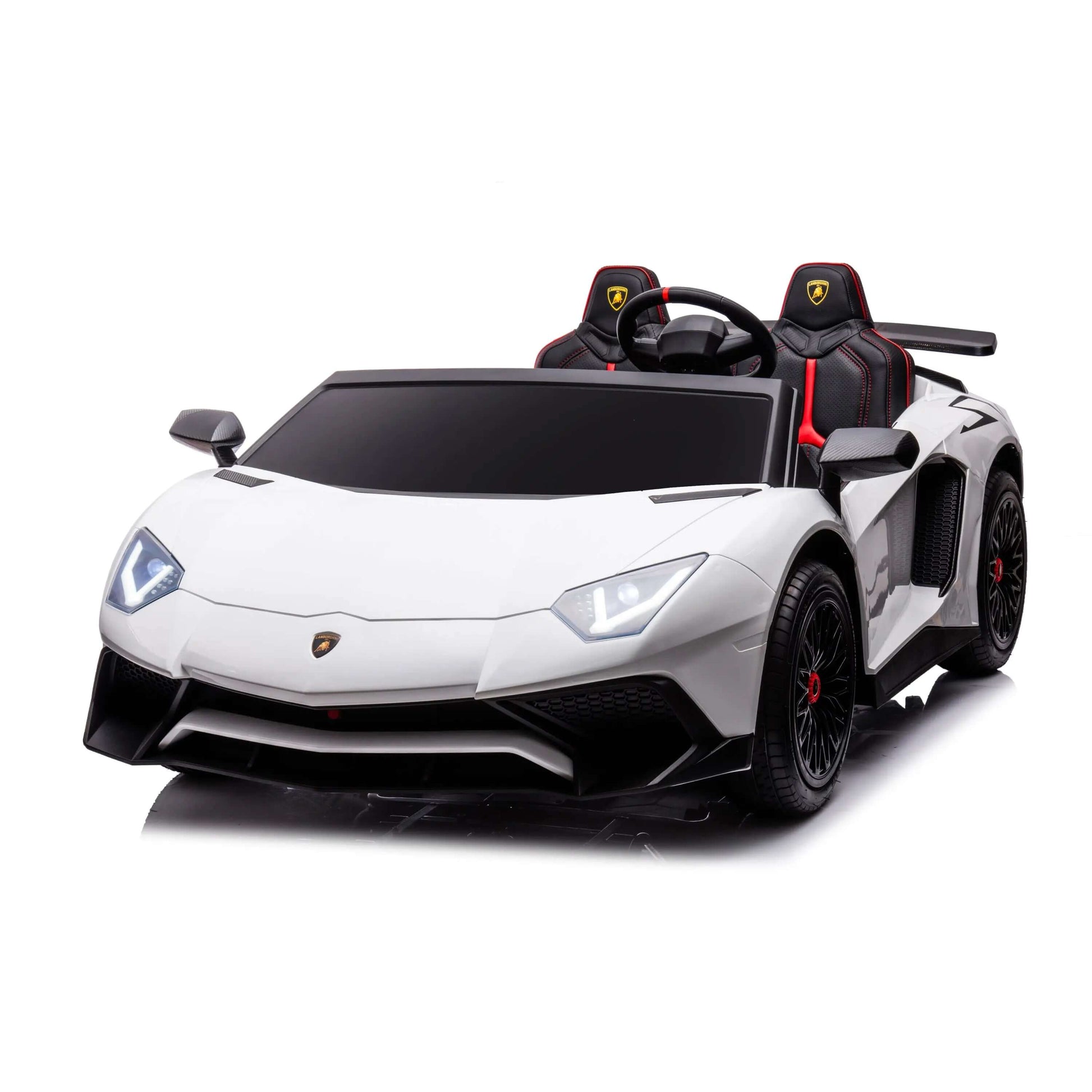 Introducing the 24V Lamborghini Aventador 2 Seater Ride on Car for Kids! The perfect choice for any child 6 years old and up who loves cars and wants to experience the thrill of Lamborghini. Featuring an incredible 24V battery and 14AH power, tubeless air tires, leather seats, LED lights, 4WD suspension, pedal brake, MP3, AUX, USB, and Bluetooth capabilities, this car is sure to provide hours of fun. With a maximum weight capacity of 220 lbs, this 24V Lamborghini Aventador 2 Seater Ride on Car for Kids is a great choice for any child who wants to feel like a real driver!