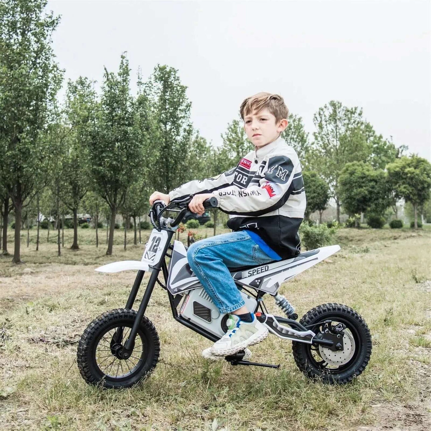Unleash the thrill of off-roading with the Freddo Electric Dirt Bike 36V, tailored for teens aged 14 and above. It boasts a robust brushless hub motor that delivers a max speed of 16MPH (25KMH) and carries a load of up to 80kgs with ease. Designed for performance and durability, it features stepless speed changes, air-filled rubber wheels for superior traction, and rear disc braking for reliable stopping power. With a key ignition start switch and a manual bell, this bike ensures a safe and exhilarating ride. Charge up for 8-12 hours and enjoy up to 50 minutes of adventure.