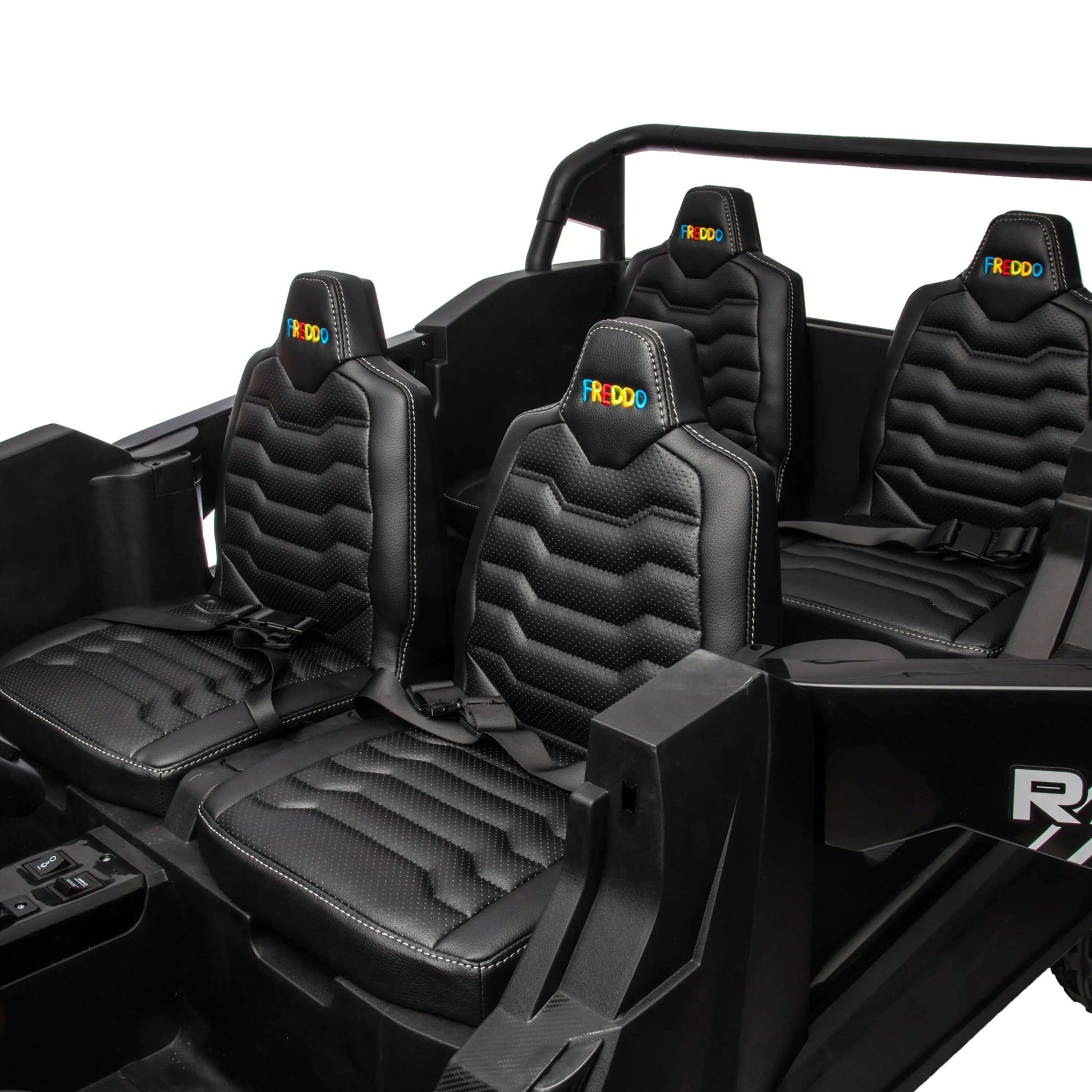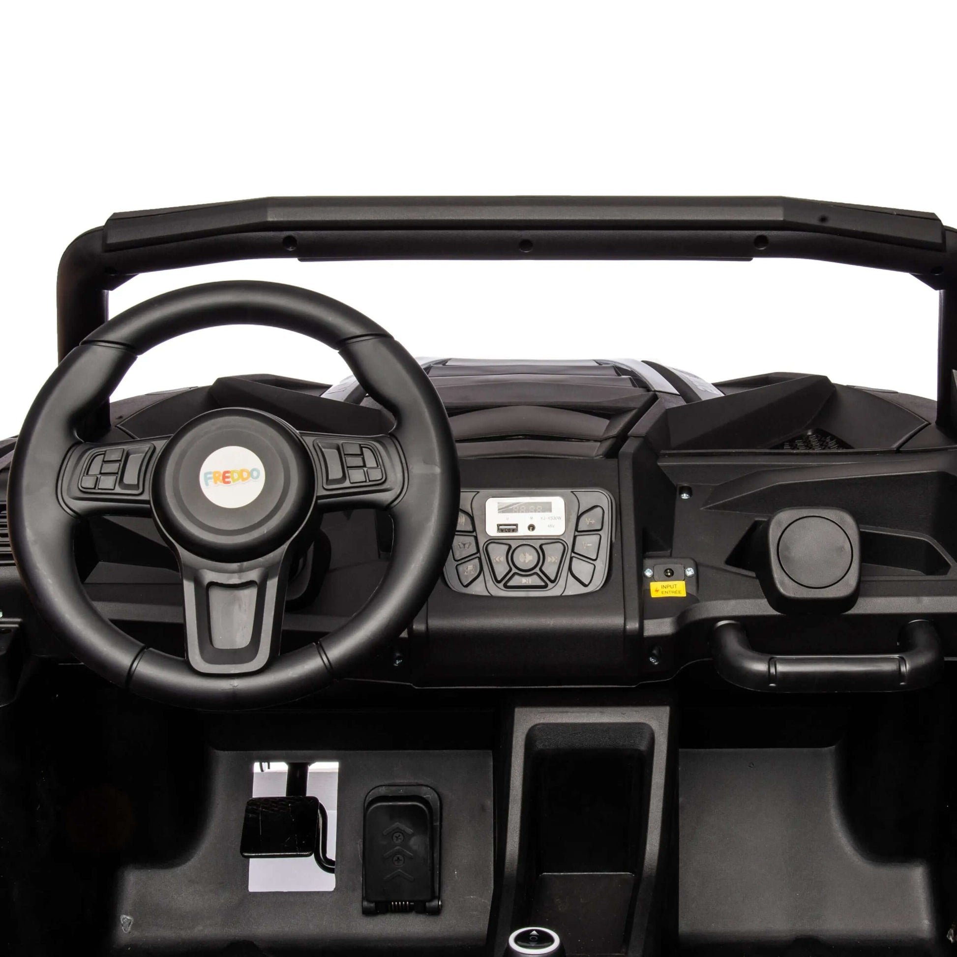 Introducing the new 48V Freddo Beast XL Dune Buggy 4 Seater Ride on for Kids. This highly advanced ride on is perfect for kids aged 14 years old and up. With two 24V 14AH batteries, tubeless air tires, adjustable leather seats, LED lights, suspension, pedal brake, key start, and an MP3 + AUX + USB + Bluetooth sound system, it's sure to provide hours of off-road fun. The Freddo Beast XL is designed with a maximum weight of 330 lbs and is sure to stand up to any terrain. Get ready for an unforgettable experience with the Freddo Beast XL Dune Buggy!