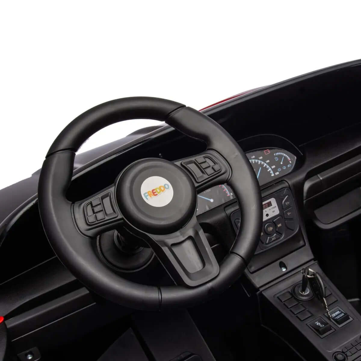 - Leather Seats: Soft, comfortable leather seats keep kids riding in style and comfort. Whether they’re going for a leisurely drive or hitting the race track, this ride on car provides added comfort with its leather seat.