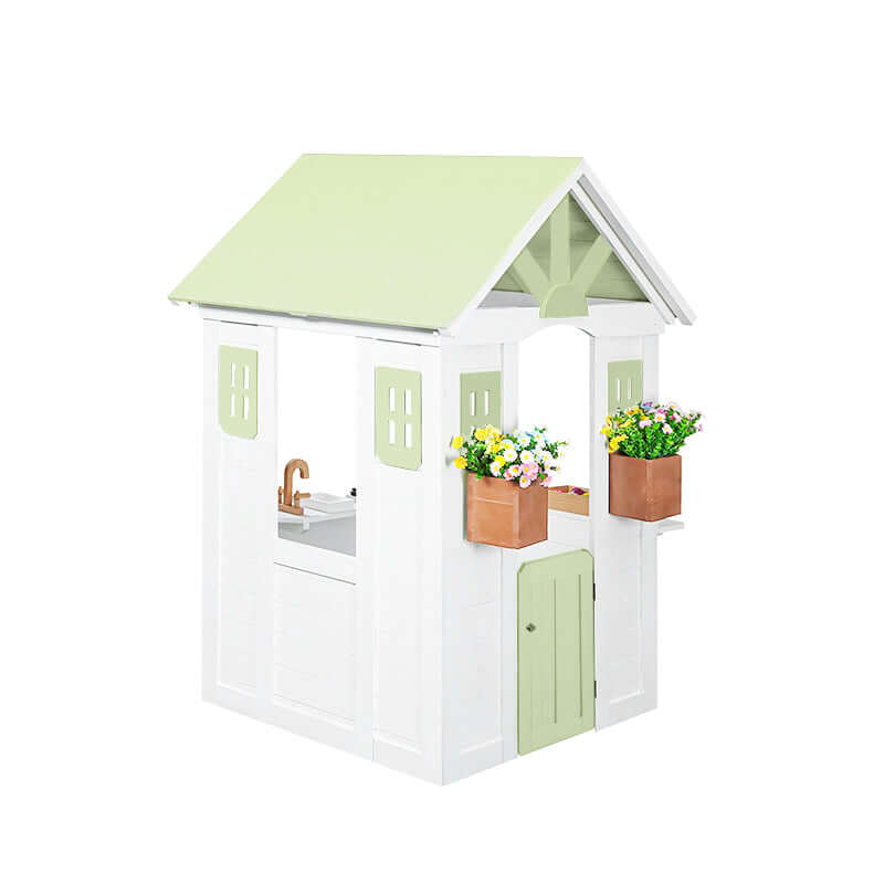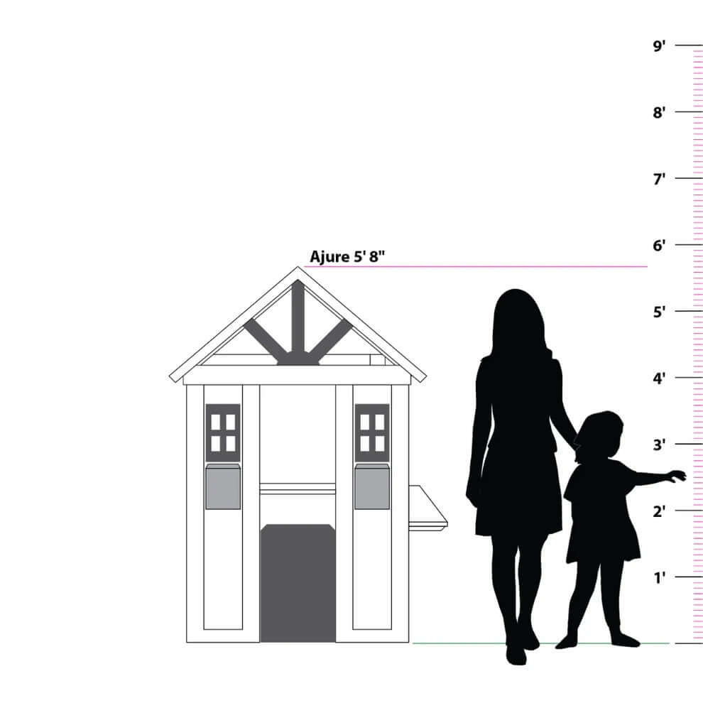 2MamaBees Ajure Playhouse will create hours of sensory play while also helping your little one explore the world of imagination. The beautiful white and black farmhouse design will create a stunning addition to any backyard. The Ajure Playhouse includes a built-in kitchen, beautiful wooden play food and cedar window boxes to create your own potted garden.