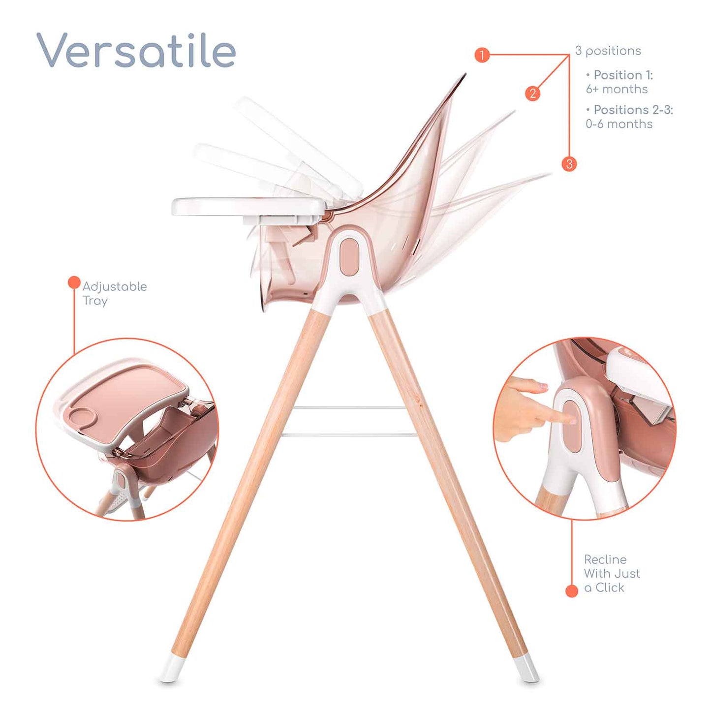 Three positions to adjust to your child’s age and food ability. From bottles to eating solids the chair can accommodate your little one. The chair also transitions to different stages from infant to toddler to young child. - QUALITY & SAFE MATERIALS