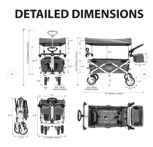 No other foldable wagon has the option to not only pull the wagon with the extendable handle, but also push it with the padded, adjustable push handle.
