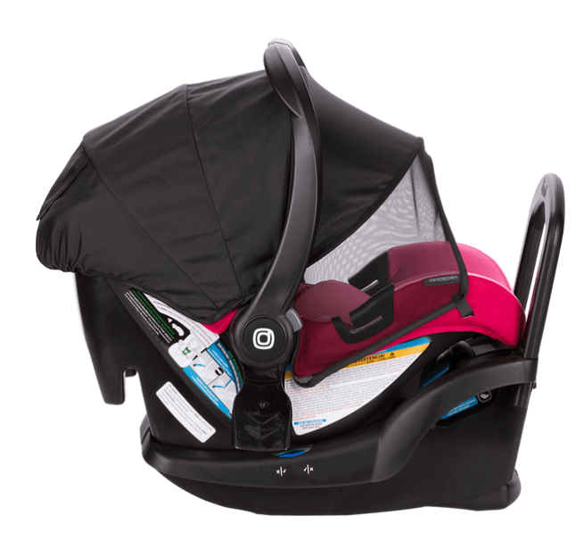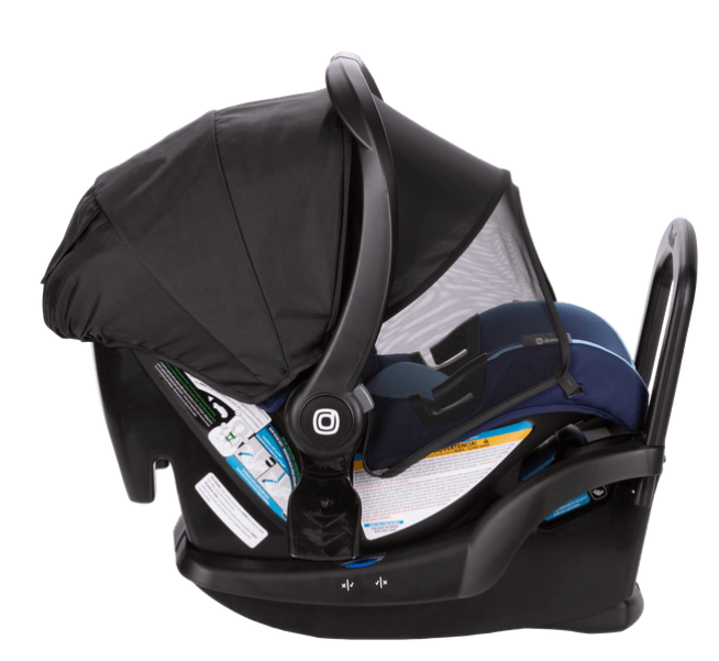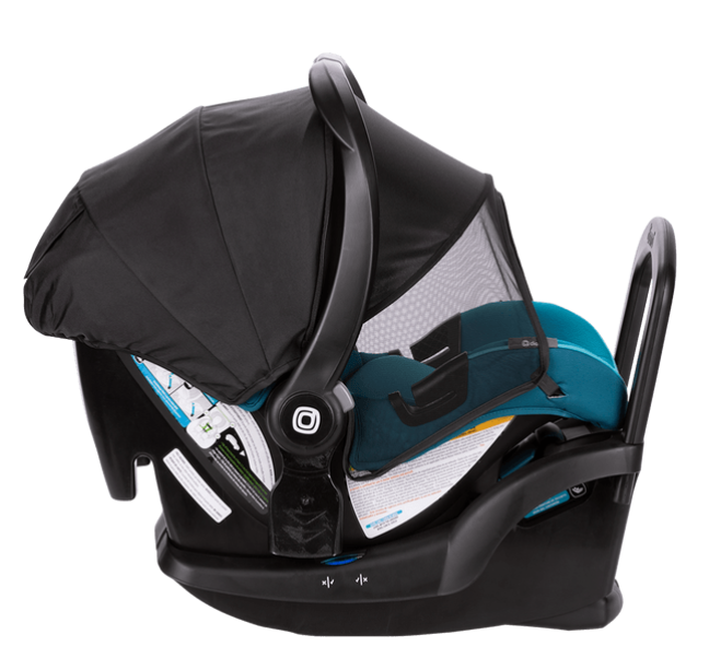 - Integrated UPF 50+ canopy – Features an expanded shade cover for optimal sun-protection and includes a peek-a-boo window for those undisturbed check-ins. The additional breathable mesh protection extends to easily clip on the side of the car seat and stows when not in use.