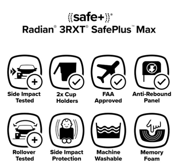 Our best-selling and most loved 3 Across All-In-One™ convertible car seat, now improved. Up to 10 years of use, optimized safety and new 2-in-1 anti-rebound bar and calf support, the Radian® 3RXT® SafePlus® Max is top-tier in comfort and protection.