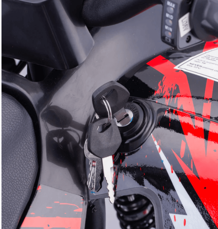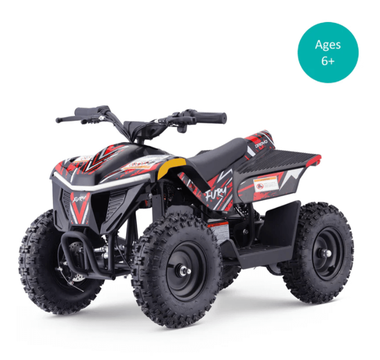 Introducing Fury, an electric Youth ATV for young thrill-seekers! Designed for kids ages 6 and up, this rugged yet sleek ATV brings excitement to every outdoor excursion. With the Speed Control Key, parents have the power to select between high speeds of 15 mph for exhilarating rides or low speeds of 10 mph for added safety. Its dual suspension system ensures a smooth and comfortable ride, even on rough terrain, making off-roading a breeze. Whether exploring trails or tearing up the backyard, our Electric Youth ATV guarantees endless fun and unforgettable adventures.