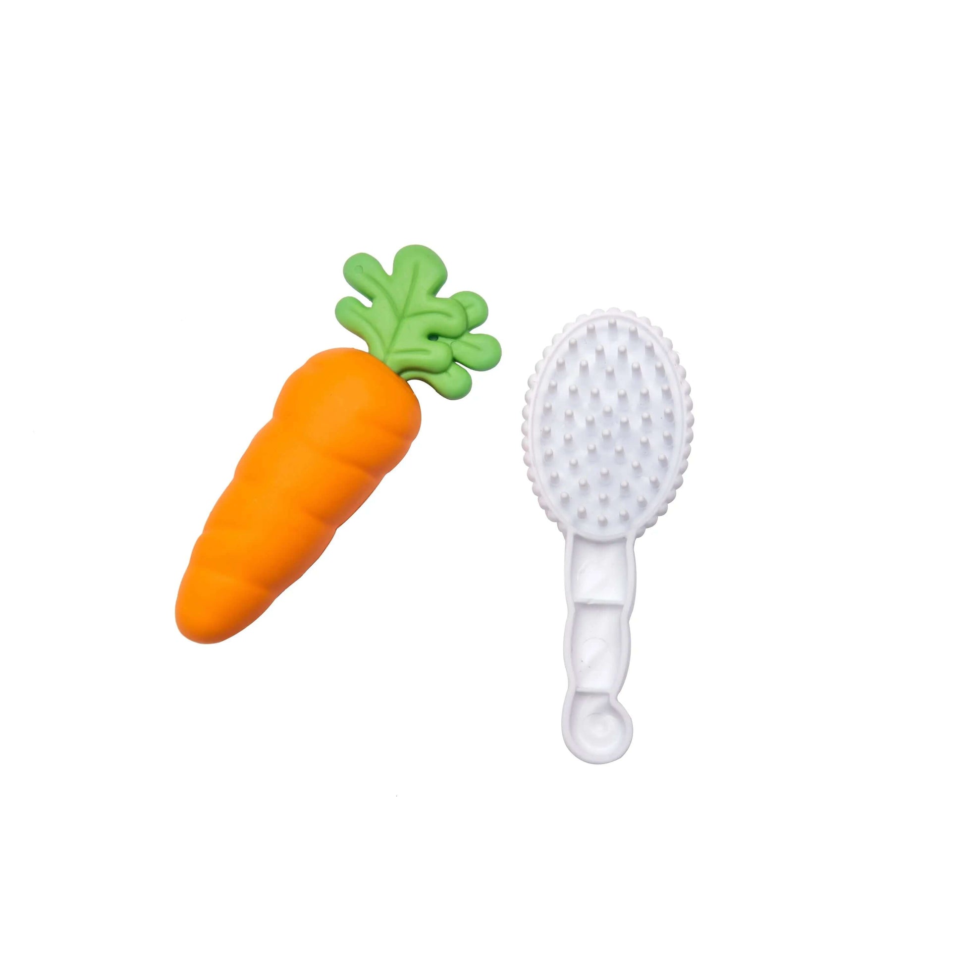 - Lighting Horn, Includes Comb and Carrot, Brush for the hair, Interactive Carrot accessory (hold near to the mouth to make eating sounds), Storage in the saddle for Accessories, with Light and Sounds