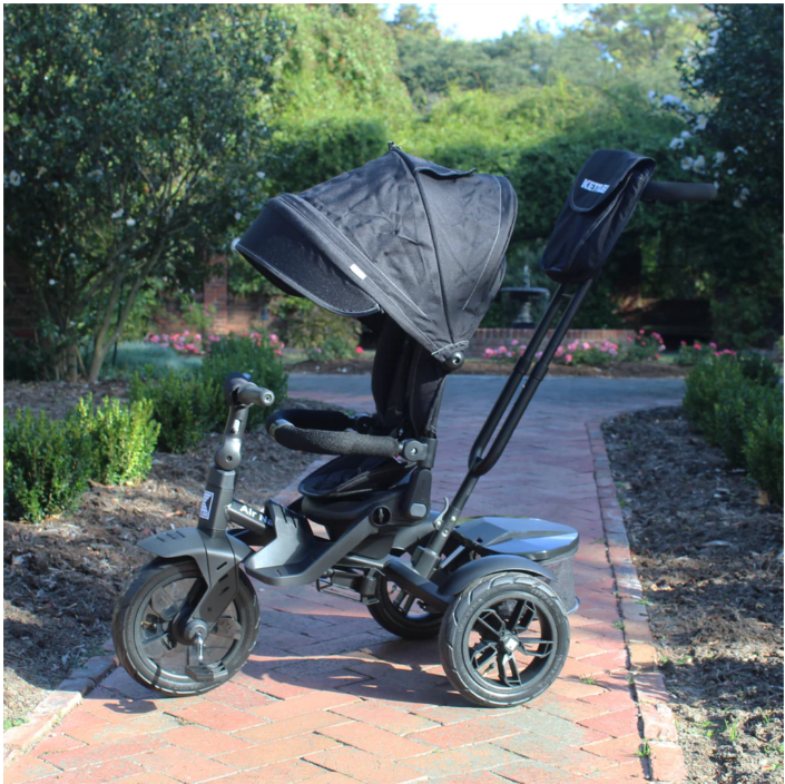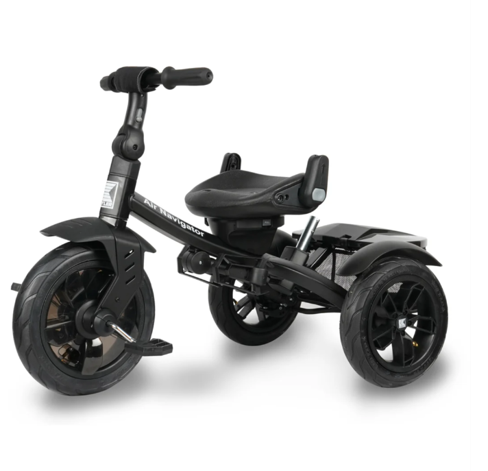 The Air Navigator 6 in 1 Trike's function grows with your kids from 10 to 72 months. It features a rotating and reclining seat with a removable footrest and a 5-point safety harness to keep your little one safe. You can put diapers or toys in the push bar bag and also large rear basket. The adjustable telescopic parent handle, foot brake and freewheeling function allow you to easily steer and control in the parent mode.