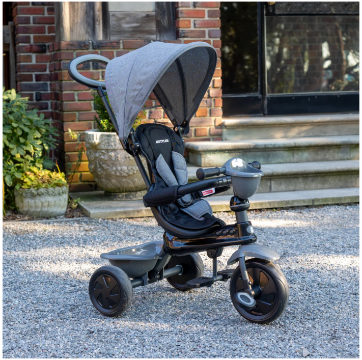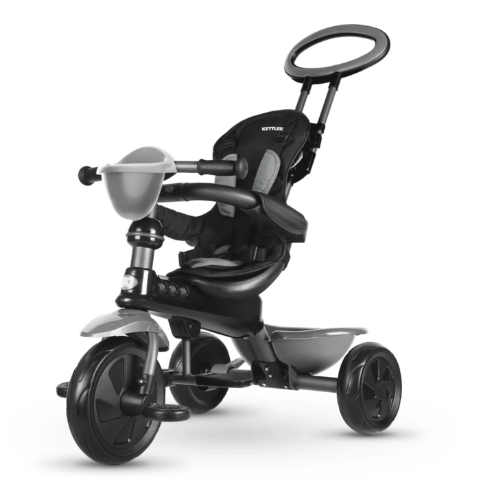 The KETTLER Happy Navigator 4-in-1 Trike grows with your little one from 10 to 72 months, transforming from parent-controlled ride on to kids’ tricycle.