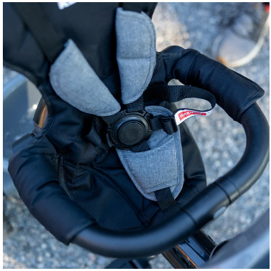Stage 1: At 10 months, baby can safely use the footrest in parent- controlled mode. They’ll have the security of a 5-point safety harness and the support of a padded high-back seat.