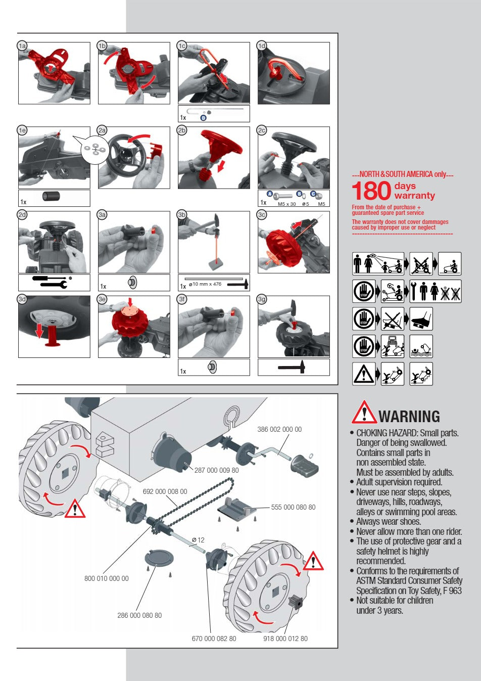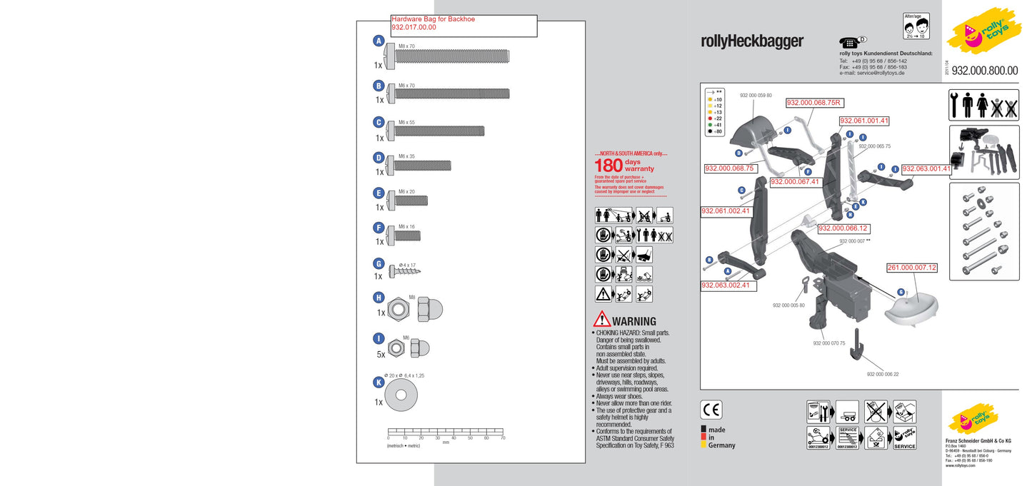 John Deere Backhoe Loader Tractor is a tough pedal tractor with a smooth finish. It comes complete with front loader and backhoe that can be raised and lowered, scooped and tipped using the levers. The oversized resin tires have long lasting rubber tread strip. The mechanical features include a strong 12mm thick rear axle, covered integral fixed wheel chain drive, a pedal crank with eccentric bearing chain tensioning system, anti slip pedals, and a heavy duty front axle with suspension.