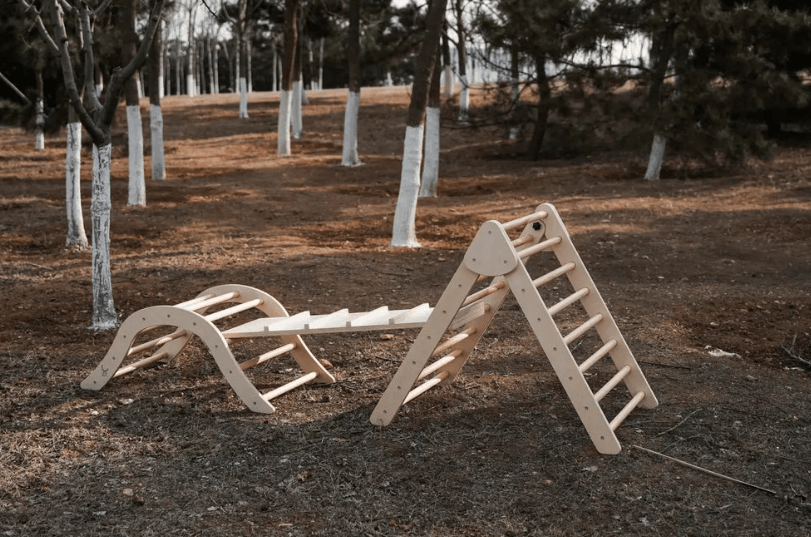 The Picklers Triangle Set is designed to encourage natural development and safe exploration for young children. This set includes three key pieces: a Climbing Pickler Triangle, a Climbing Ramp, and an Arch, all crafted from durable Birch Plywood. Known for its strength and flexibility, this material is also environmentally friendly, providing a safe and reliable option for children's play areas.