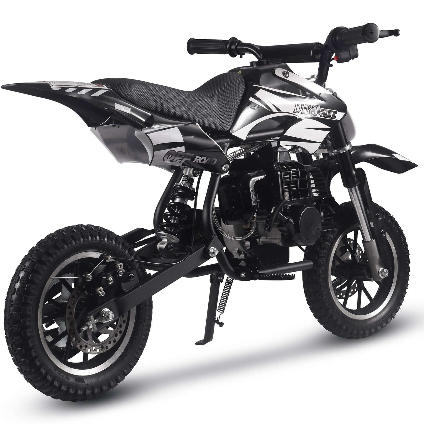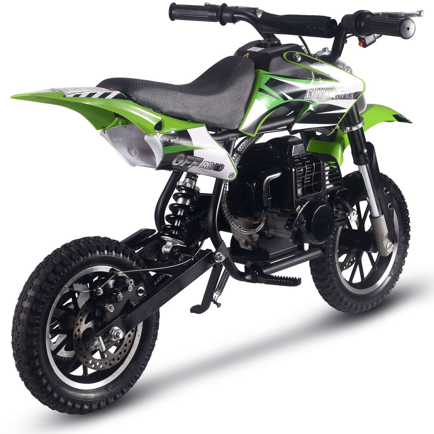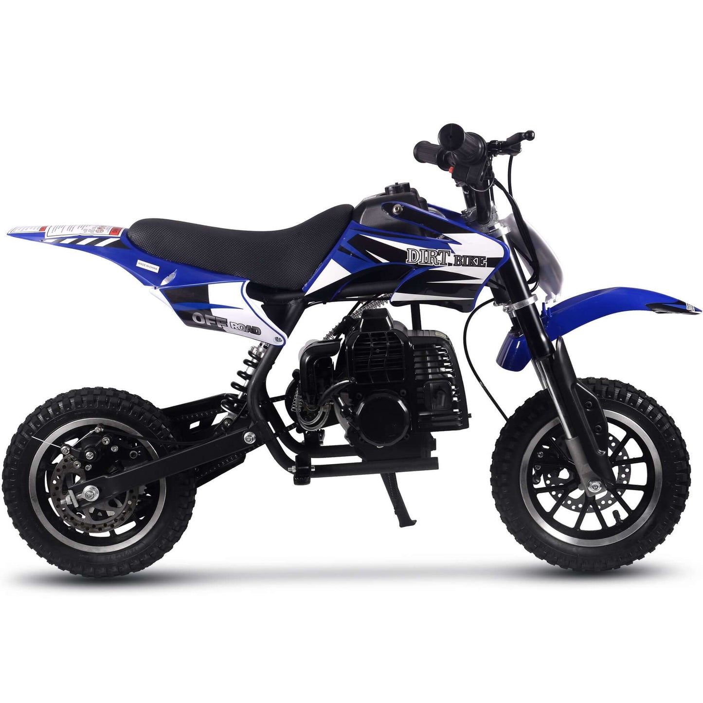 The MotoTec Alien 50cc Kids Dirt Bike - The perfect kids starter dirt bike. The latest generation of 50cc mini bike engines are faster, torquier, more reliable and even easier to set up and start than ever before. 2-Stroke engines are preferred as they provide almost double the power of the same size 4-stroke. Easy pull start, improved carburetor and all of the standard safety features, support and reliability MotoTec provides.