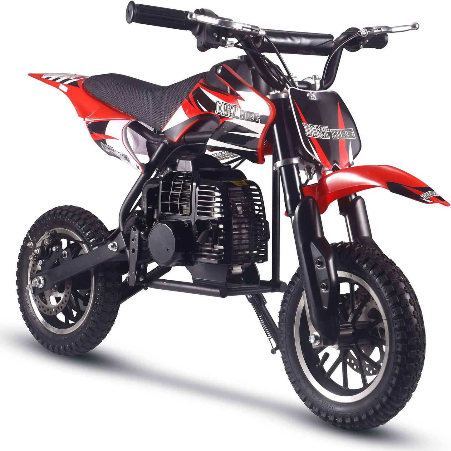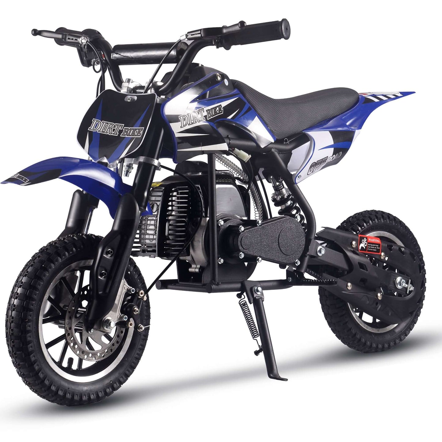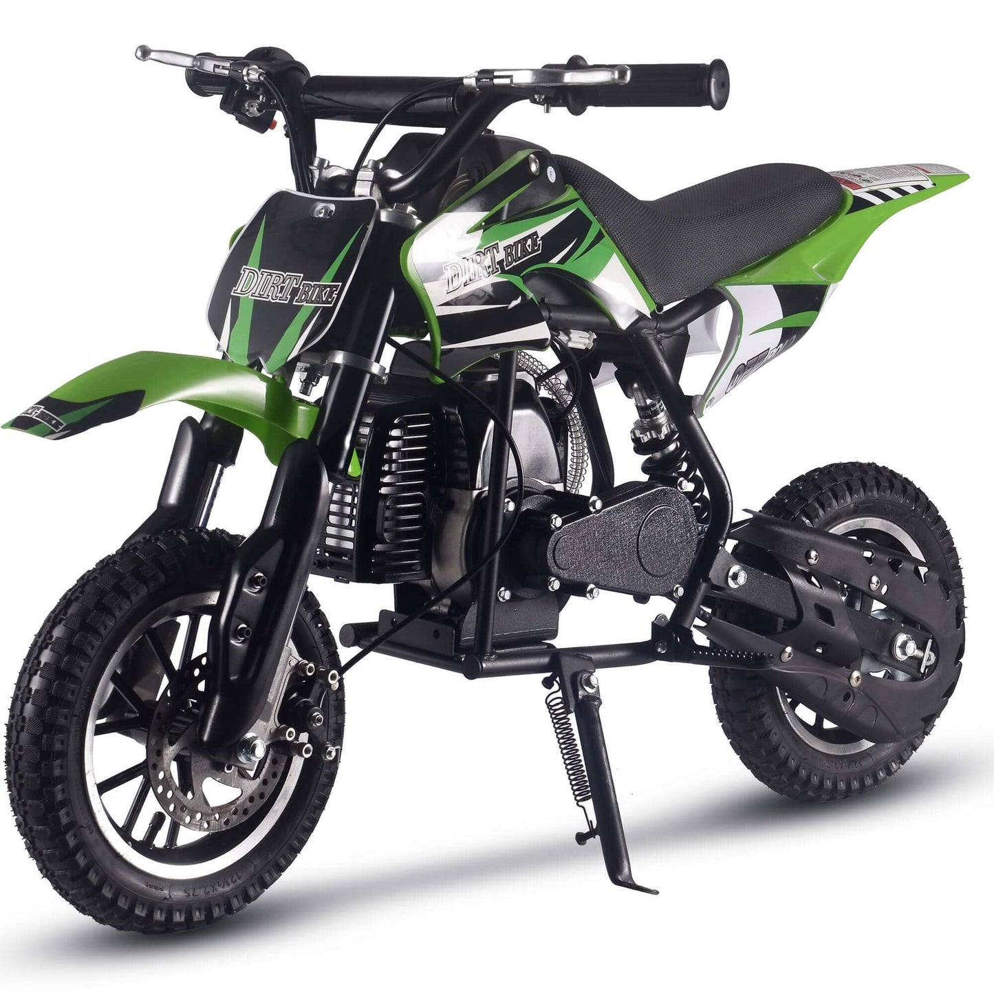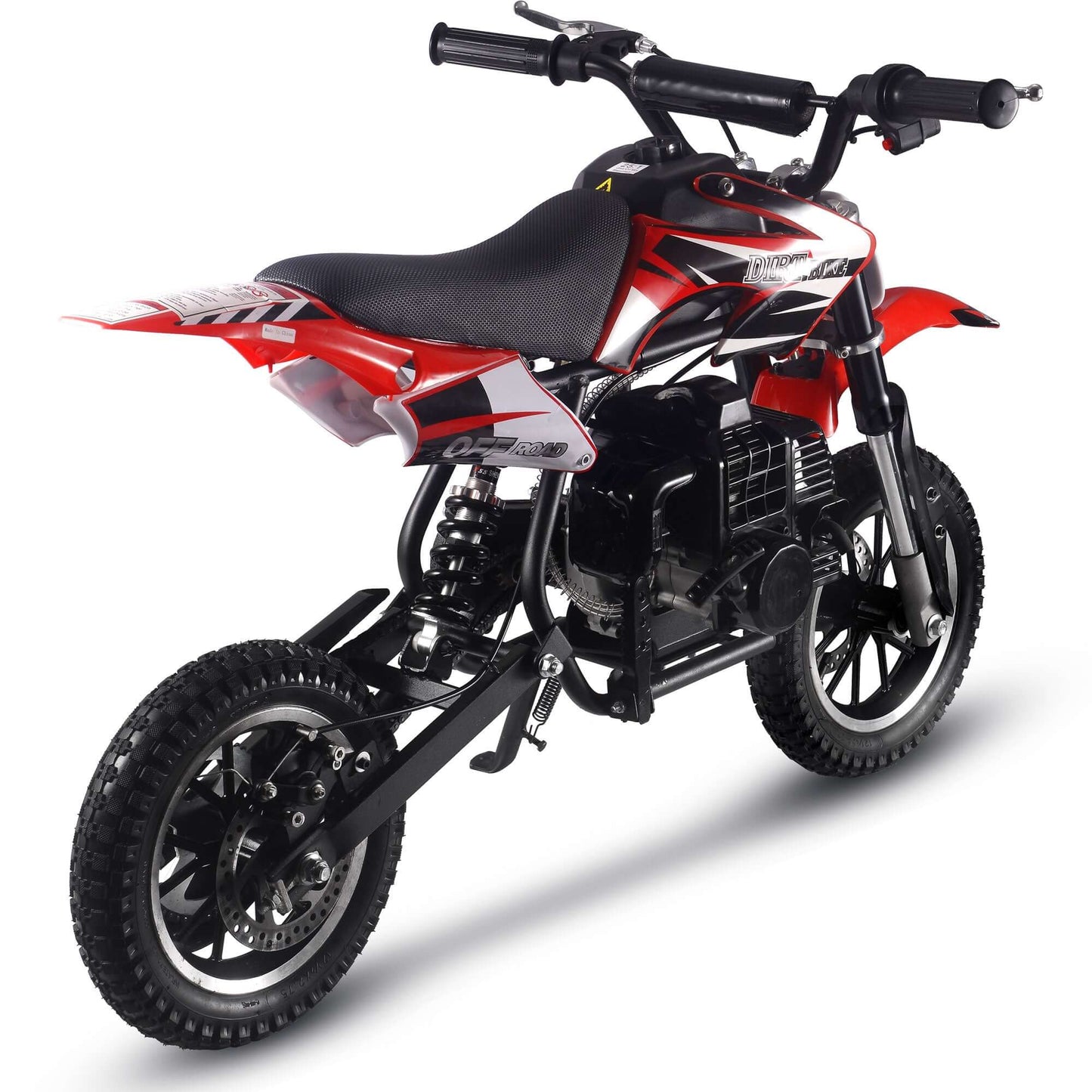 The MotoTec Alien 50cc Kids Dirt Bike - The perfect kids starter dirt bike. The latest generation of 50cc mini bike engines are faster, torquier, more reliable and even easier to set up and start than ever before. 2-Stroke engines are preferred as they provide almost double the power of the same size 4-stroke. Easy pull start, improved carburetor and all of the standard safety features, support and reliability MotoTec provides.