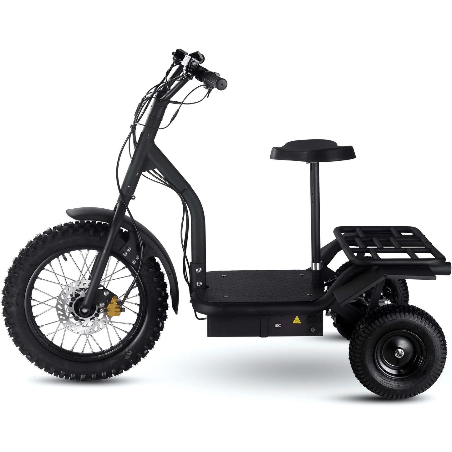 The MotoTec Electric Powered Trike, also known as the Personal Transporter, is a versatile three-wheel electric scooter designed for both seated and standing riding. Perfect for events, security, warehouse operations, or simply for fun, it offers the convenience of a three-wheel Segway at a fraction of the cost.