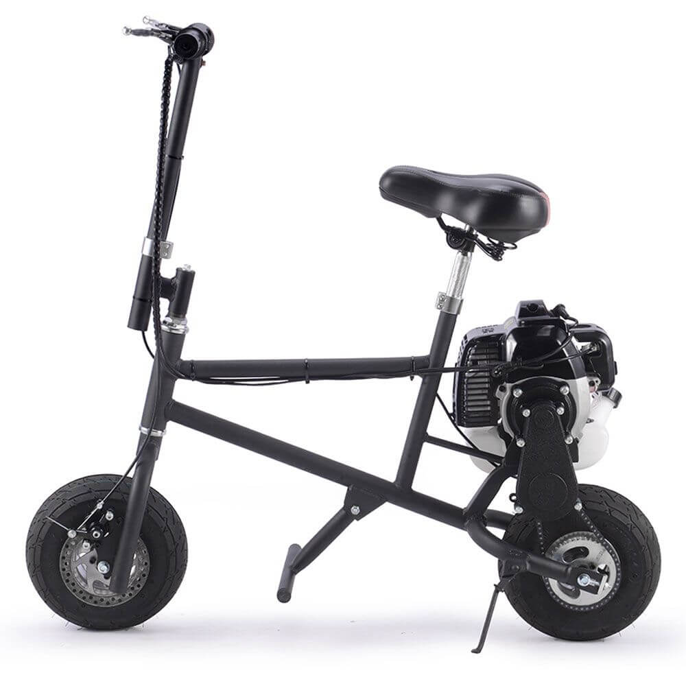 The MotoTec 49cc Gas Mini Bike is the ultimate kid ride! Great for driveway and parking lot fun, cruise around cones and speed through trails with ease. Comes standard with front & rear disc brakes and 10 inch pneumatic street tires.