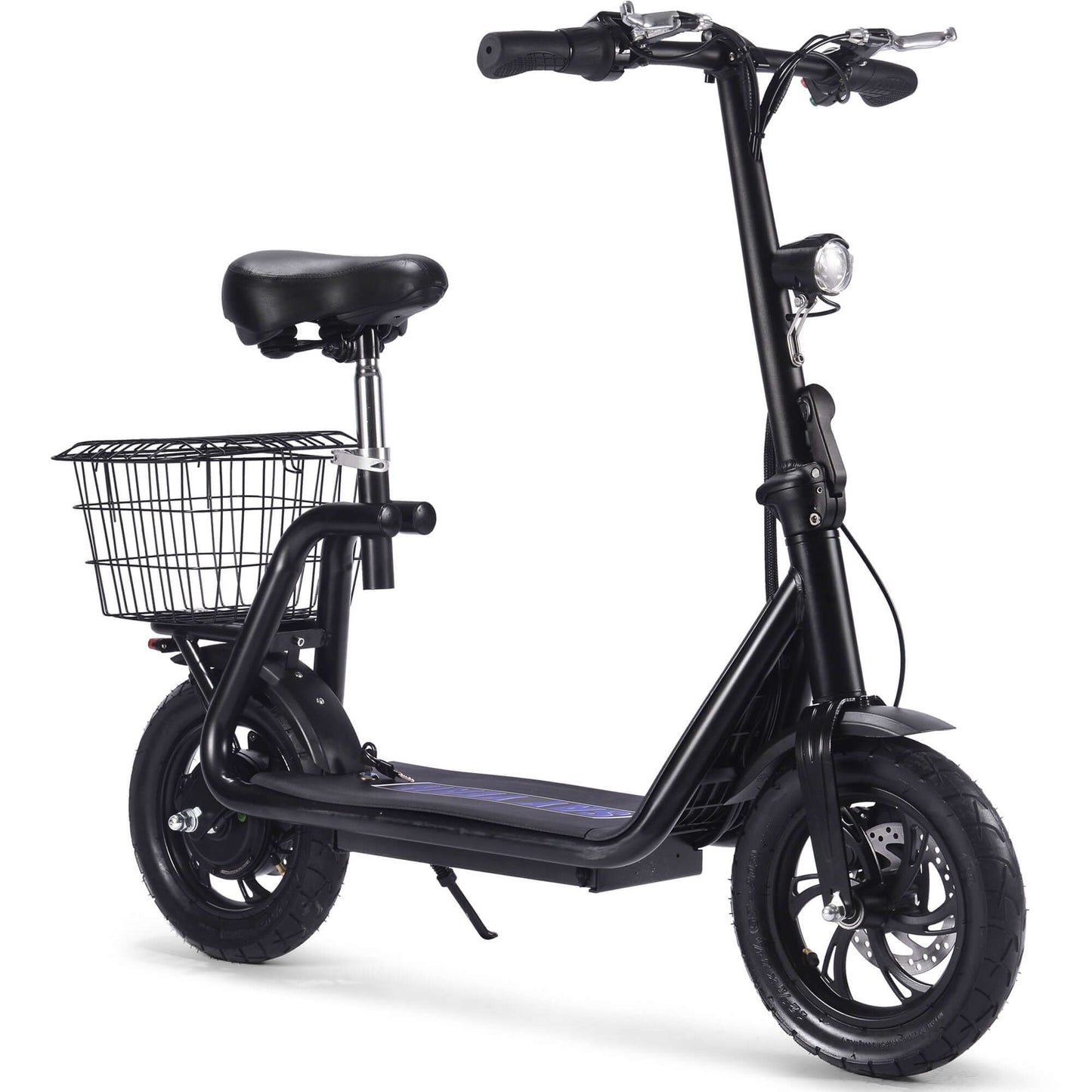 Introducing the MotoTec Metro 36v 500w Electric Scooter, the ultimate commuter ride. Powered by a 36 volt 12ah Lithium Battery pack and a 500 watt brushless motor. Comes standard with large 12 inch pneumatic tires, foldable handlebars, LED headlight & taillight, front and rear disk brakes with carrying rack.
