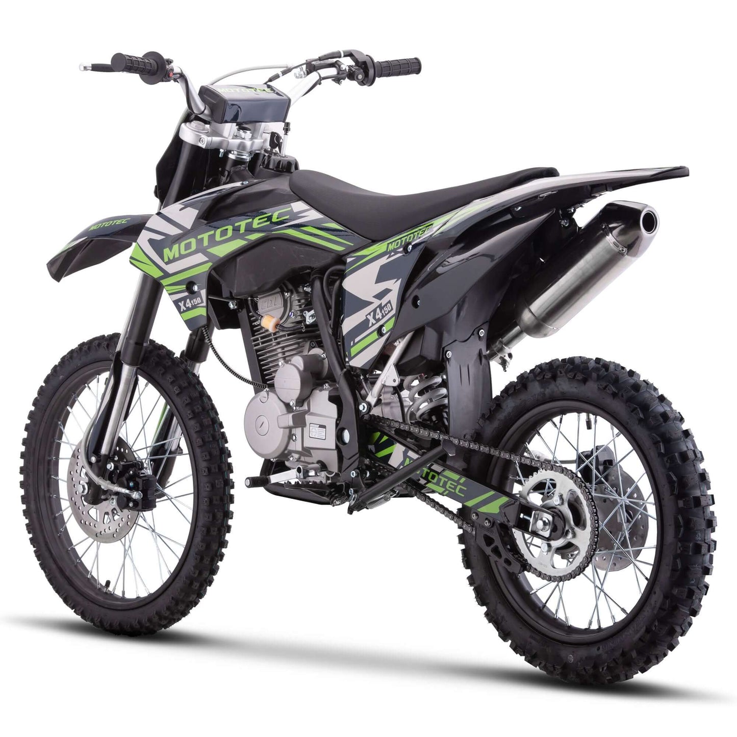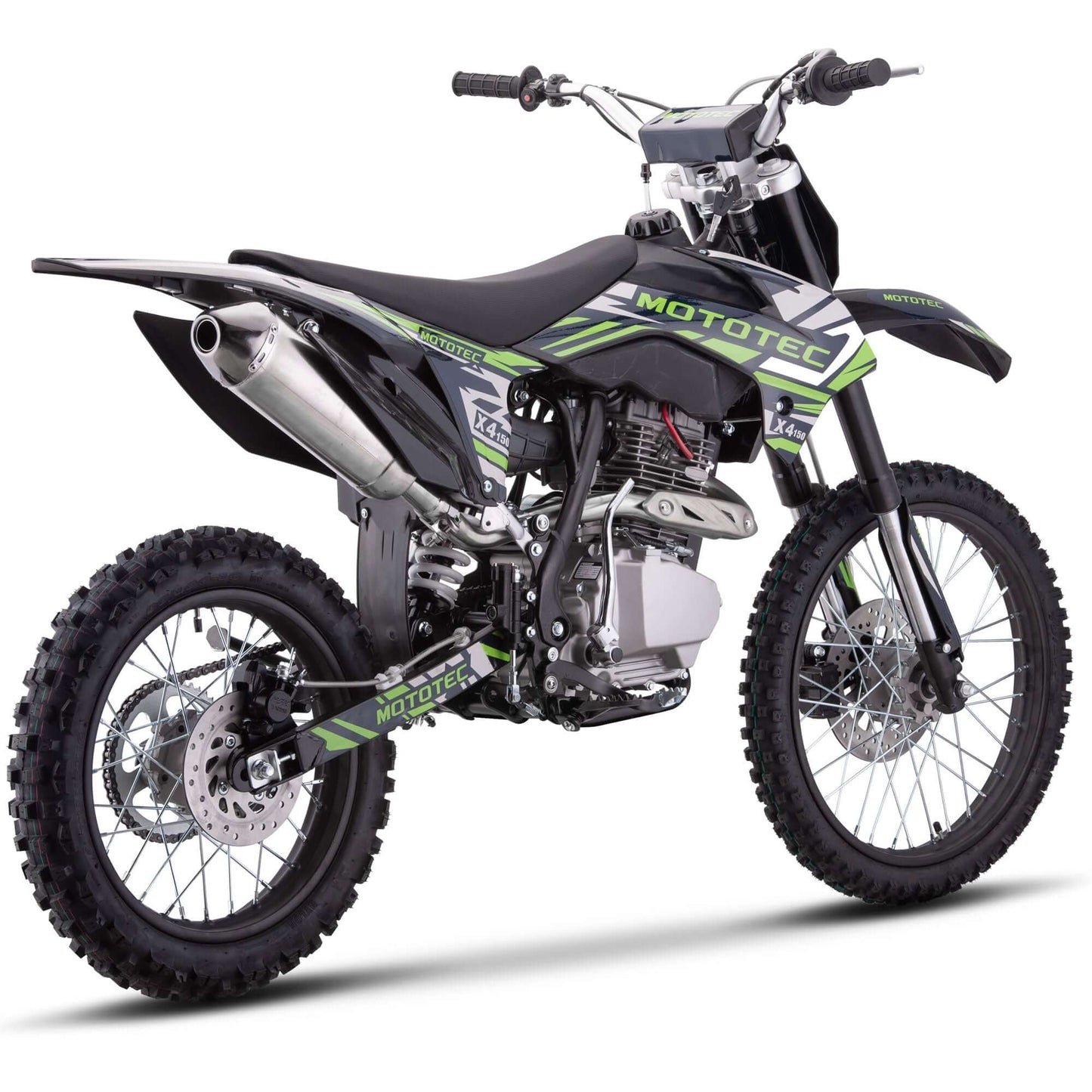 The MotoTec X4 150cc 4-Stroke Dirt Bike - The latest generation of 150cc mini bike engines are faster, torquier, more reliable and even easier to set up and start than ever before. Electric start, improved carburetor and all of the standard safety features, support and reliability that MotoTec provides.
