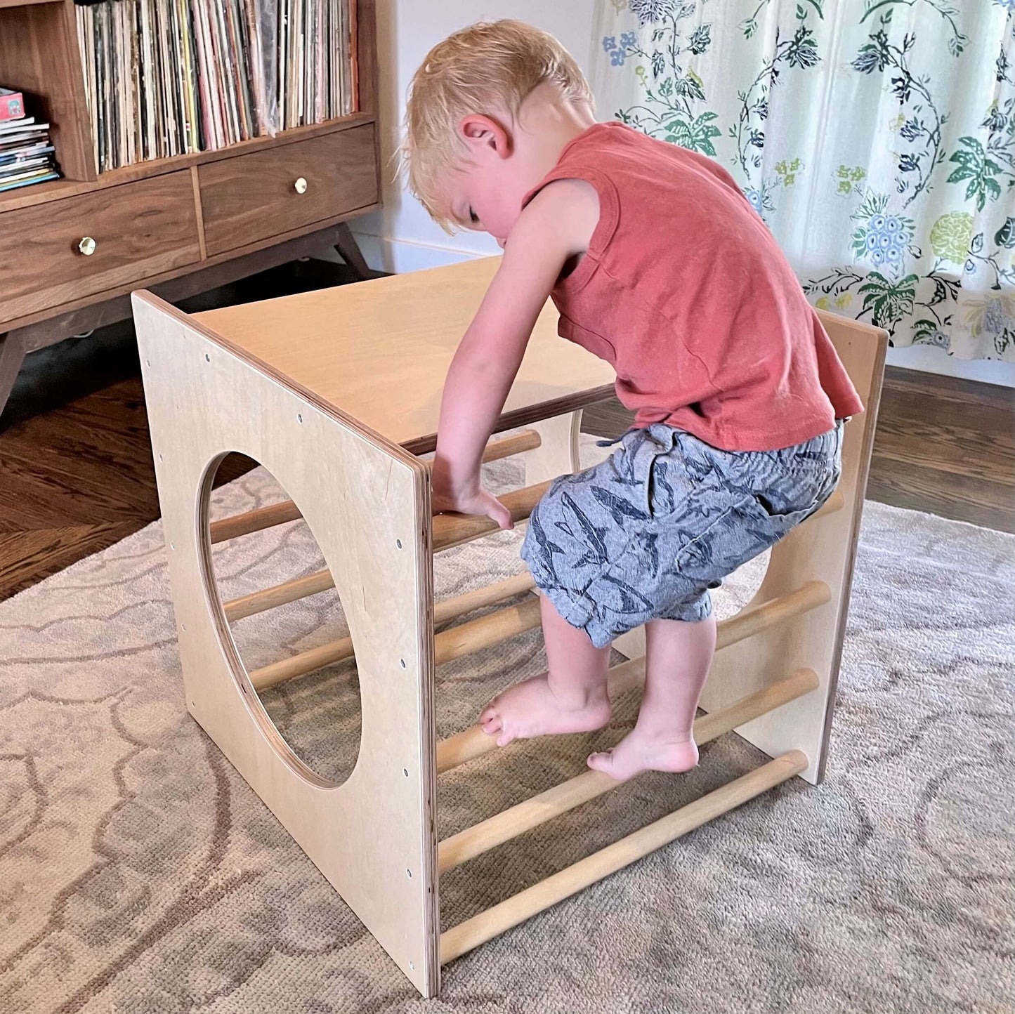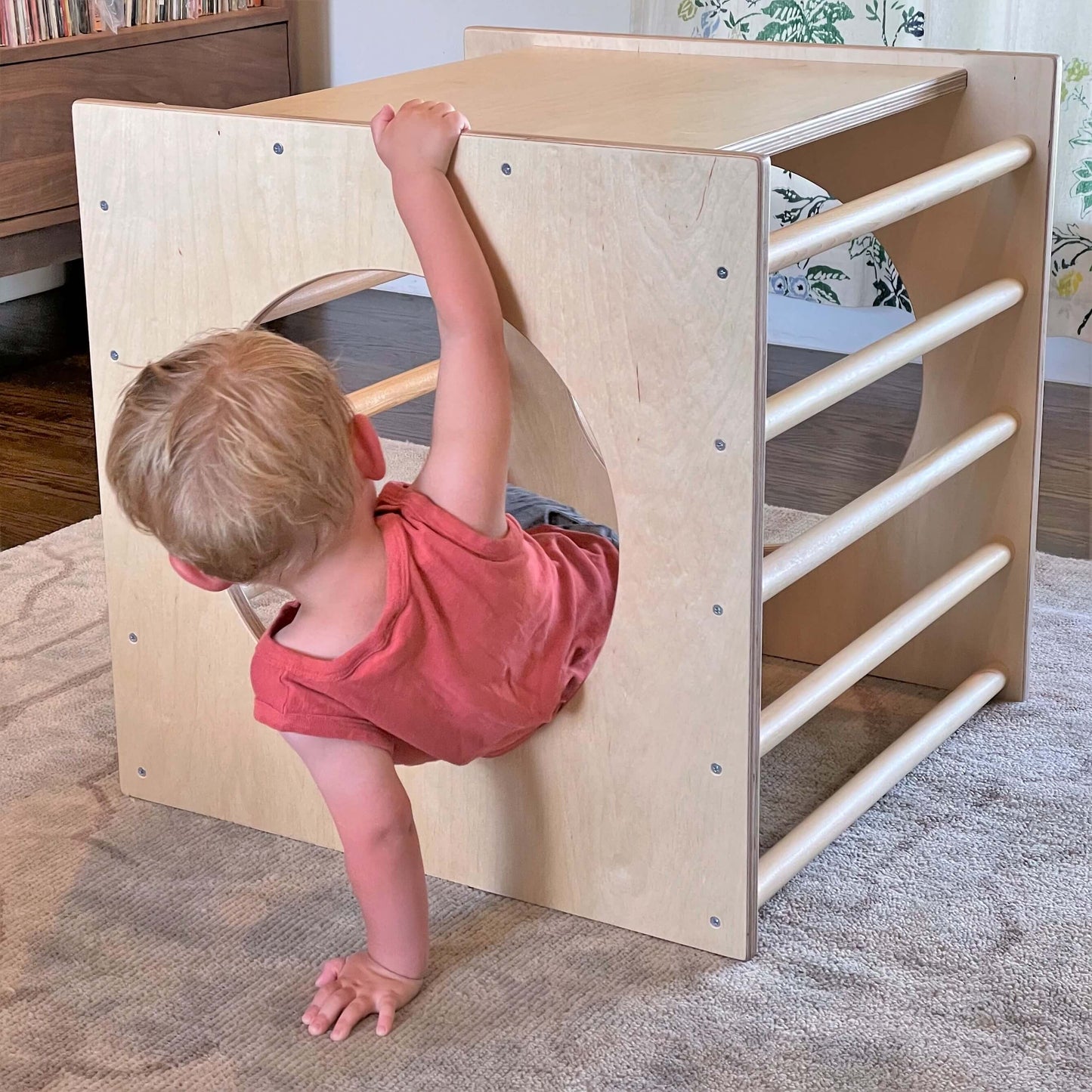 The RAD Play Cubes promote curiosity, exploration, and gross motor development in infants and toddlers. With circular openings and a sturdy structure, children can develop cruising and pulling themselves to a stand or climb on top. Play Cubes can be used as standalone environments or portals to other play areas. Connect a Reversible Climbing Ramp to create a slide or bridge to other RAD climbing structures.