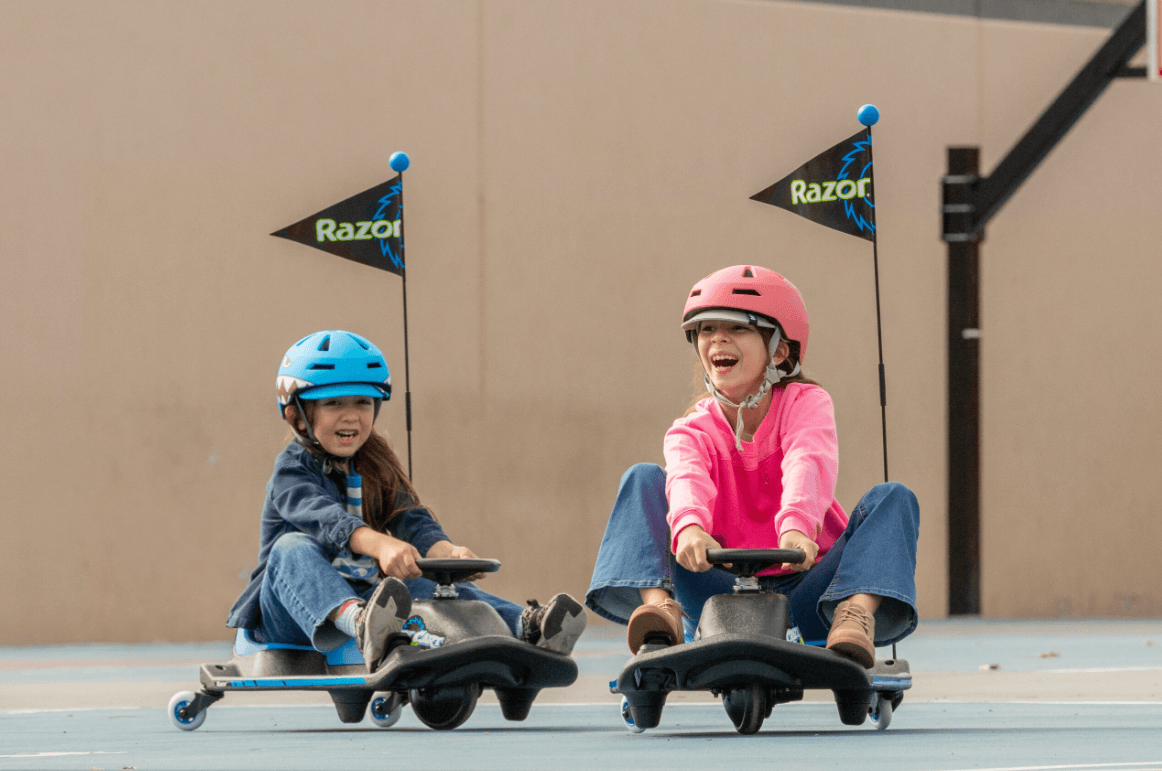 The Crazy Cart Shift’s simplified drift system automatically engages so that riders can keep both hands on the wheel while focusing on steering and throttle control, just like the professionals!