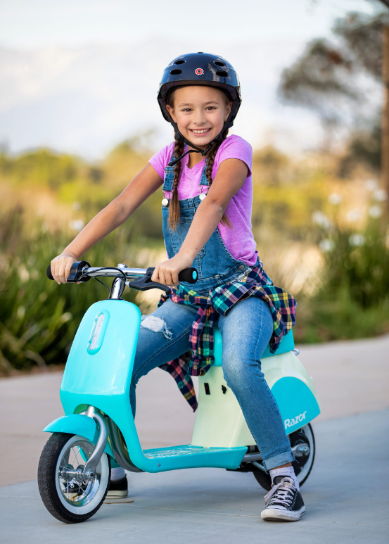 - Razor’s Smallest Pocket Mod – A vintage-inspired electric scooter scaled-down and slowed-down for riders age 7 and up, with a maximum weight of 110 lbs (50 kg).