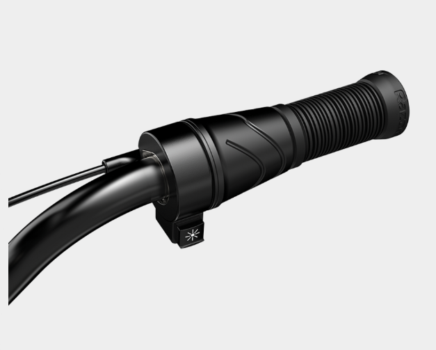 Features a twist-grip throttle, and a hand-controlled rear disc brake for responsive speed control.