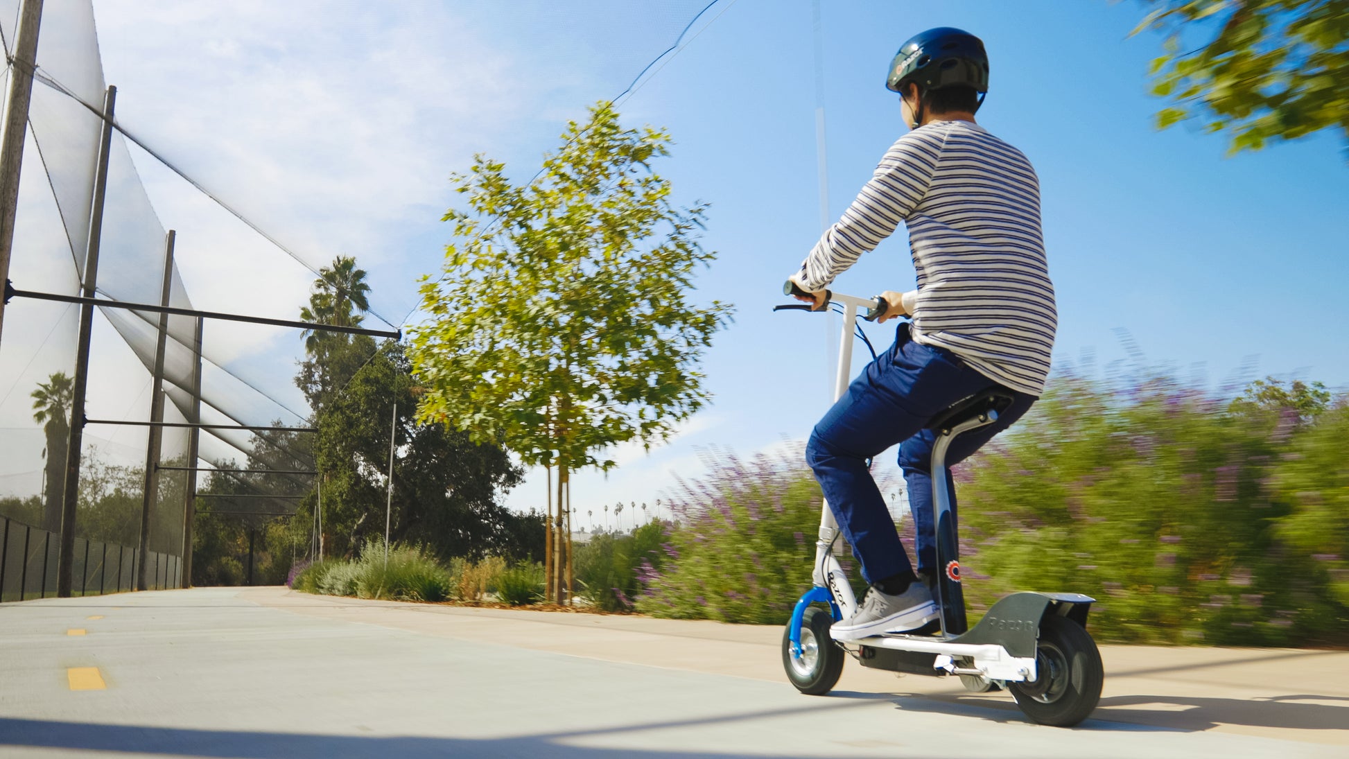 - Larger 9” (229 mm), pneumatic front and rear tires support older riders, while helping soften out rough surfaces for a smooth ride
