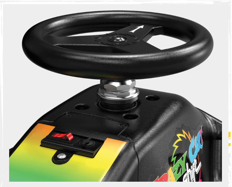 - Steering: Steer-to-drift. Uses the steering wheel to drift like a real car. Allows young riders to keep both hands on the wheel for stability