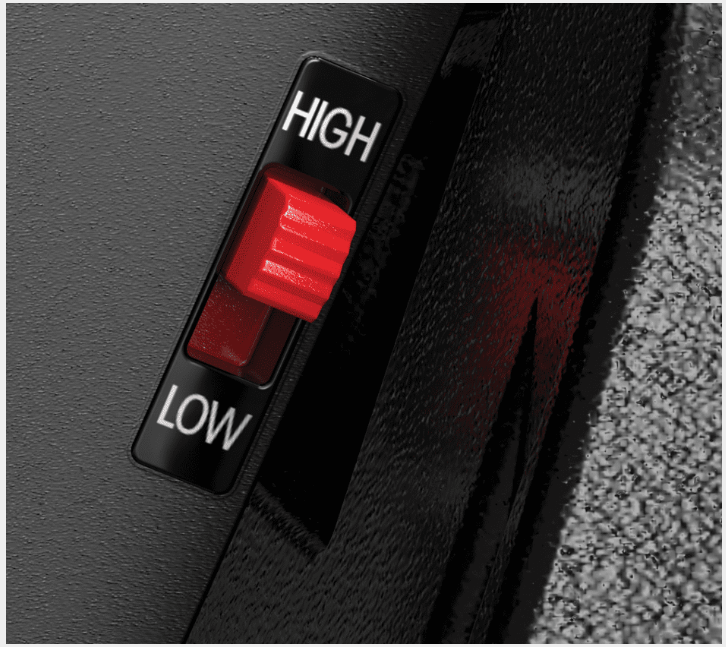 - Top Speed Control Switch – allows parents to select the top speed they feel is appropriate for their child: 8 mph (13 km/h) in the default “HIGH” setting, or 2.5 mph (4 km/h) in the optional “LOW” setting