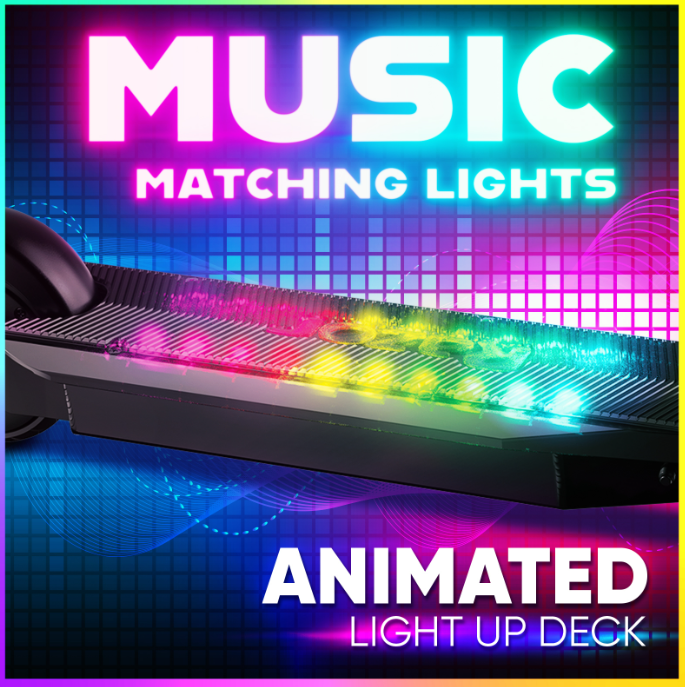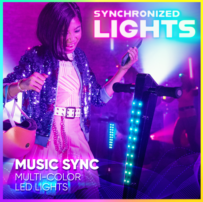 - Synchronized Light Show – Travel like a pop star with Razor’s innovative music matching system — multi-color LEDs in the deck and steering tube synchronize to your music, creating a light show matching the beat and getting you in your groove.
