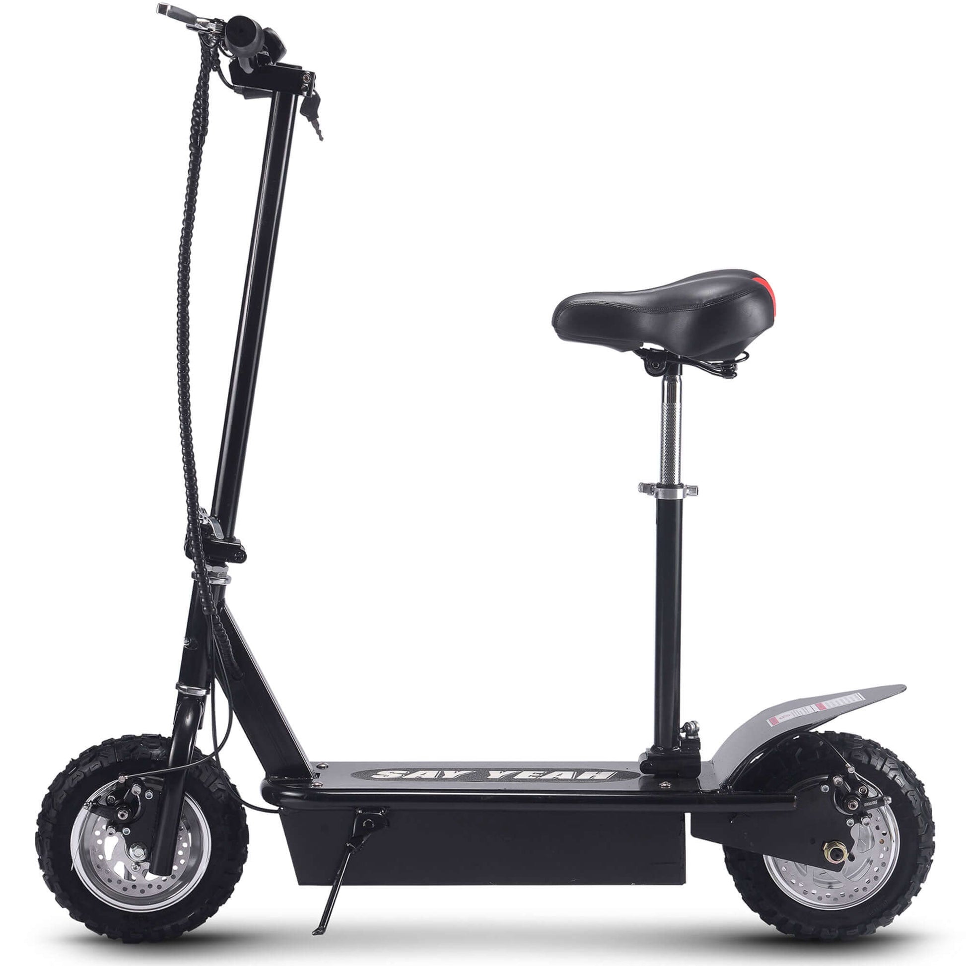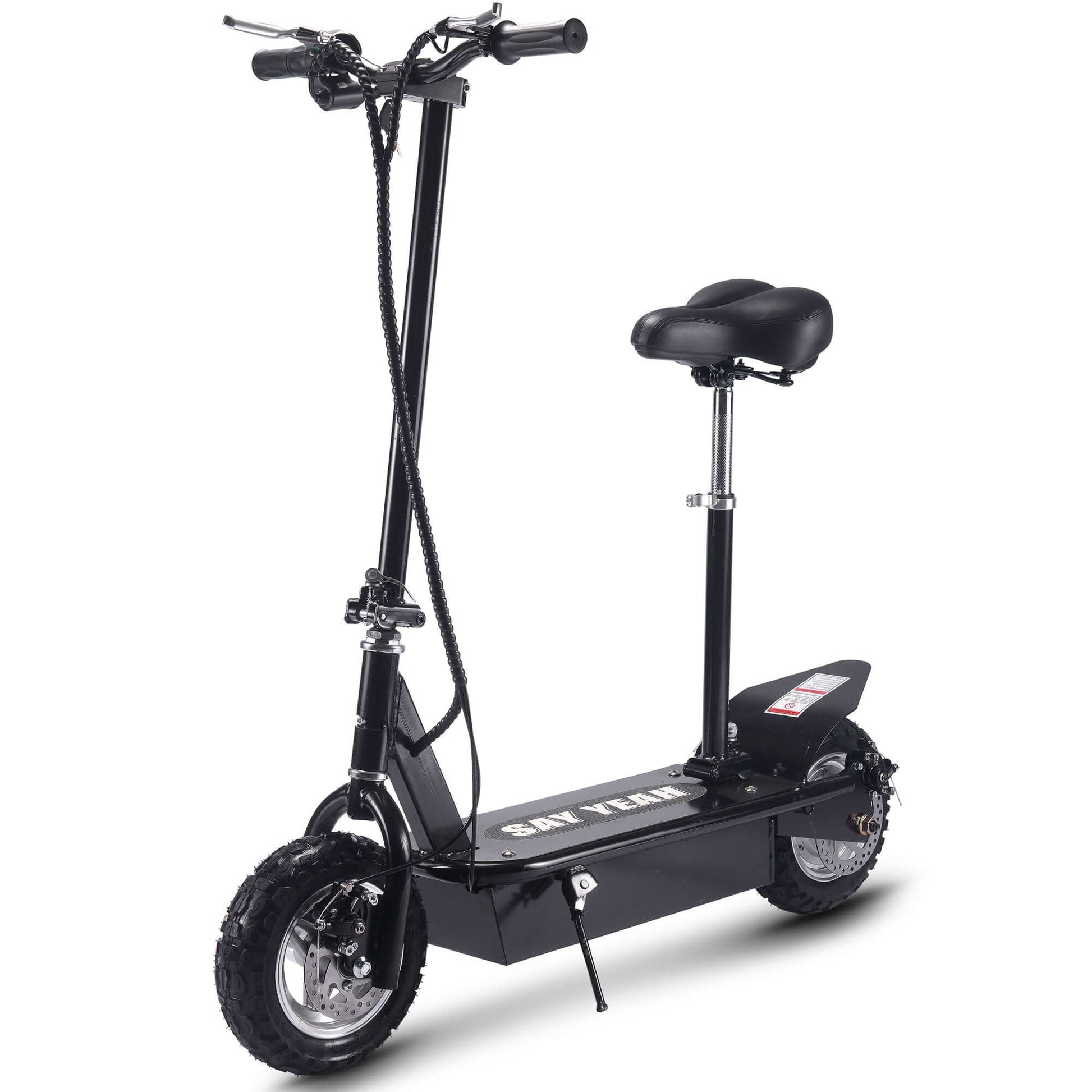 Introducing the new Say Yeah 36v 500w Electric Scooter, foldable seat and handlebars with a new modern and elegant design. Standard features include: a half twist throttle for safety, front and rear disc brakes, key switch, large 10 inch knobby pneumatic tires for off road riding and a powerful hub motor for the most rugged terrain.