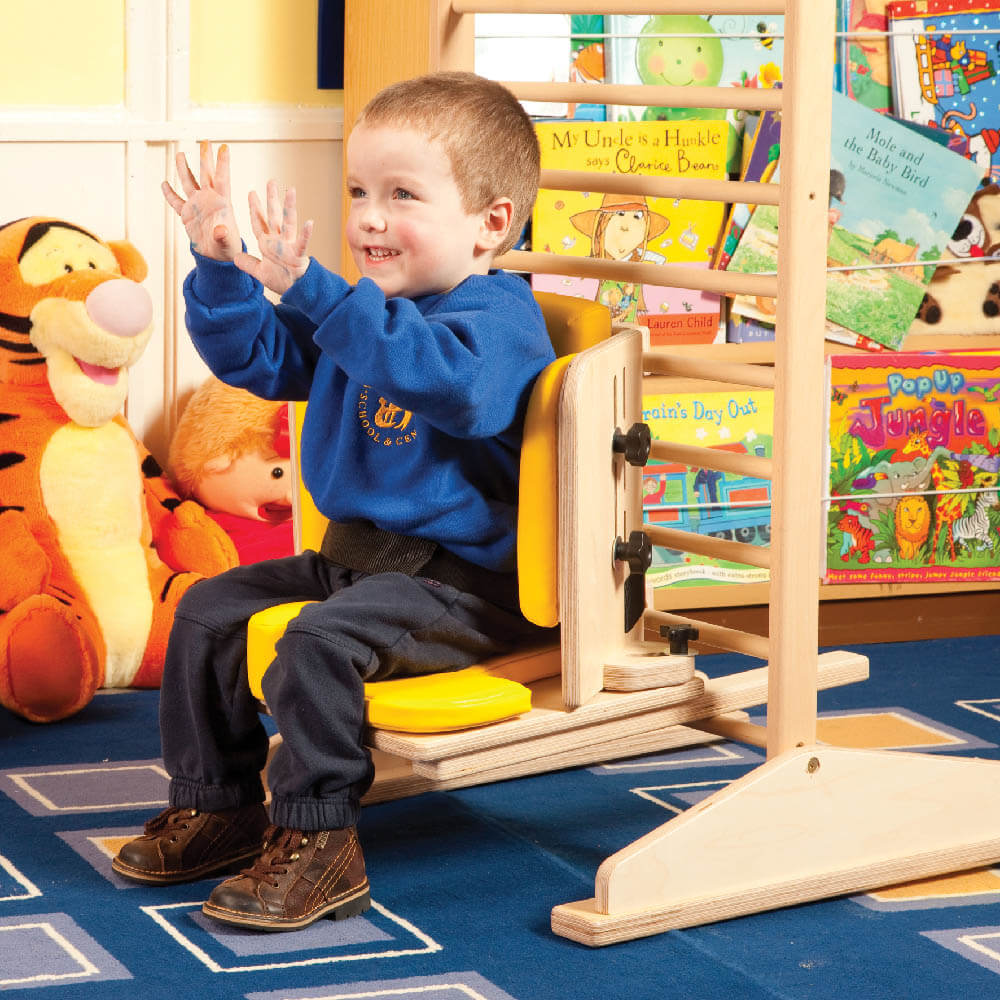 This chair is designed to provide support at the back and sides of children to improve their sitting balance. This encourages social interaction and allows them to engage in floor-based activities without the risk of falling over.