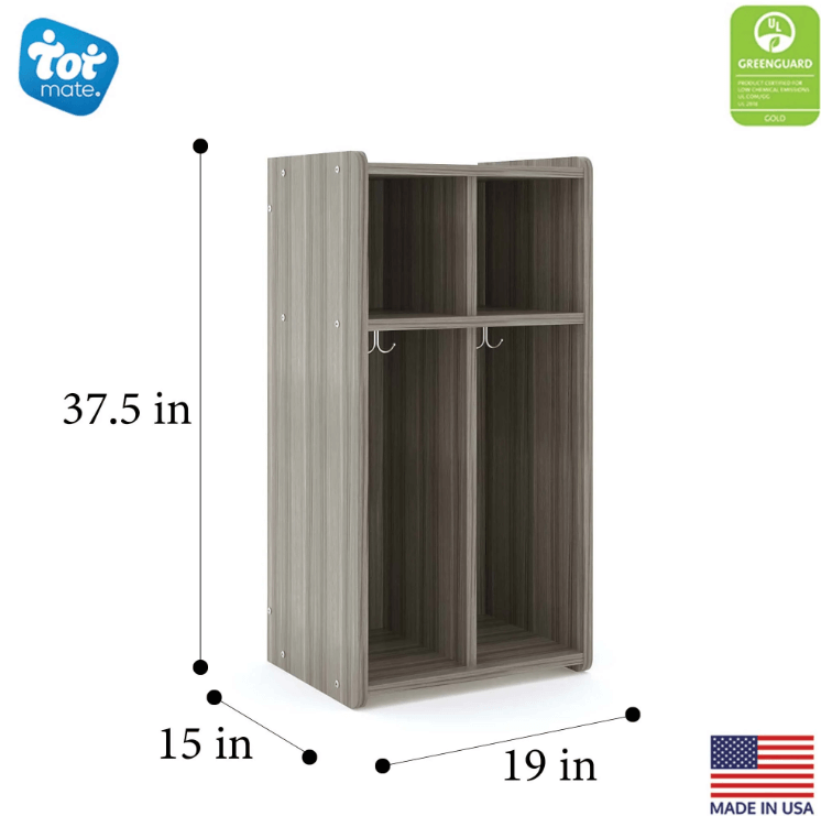 - 2 locker compartments with sturdy double coat hooks, 8-1/4"W x 23-1/2"H x 13-1/2"D