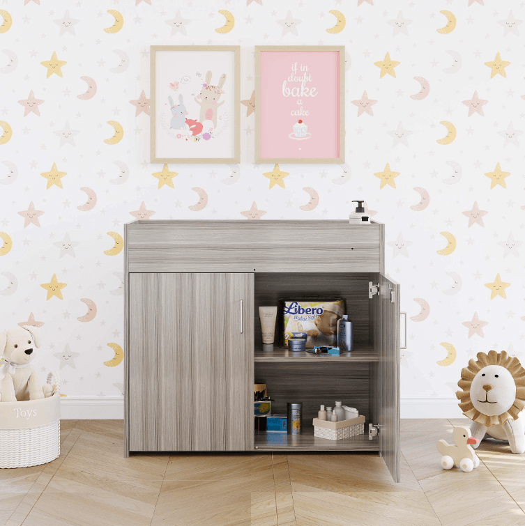 - One Fixed Shelf: The storage cabinet has one fixed shelf to keep baby changing supplies neat and organized.