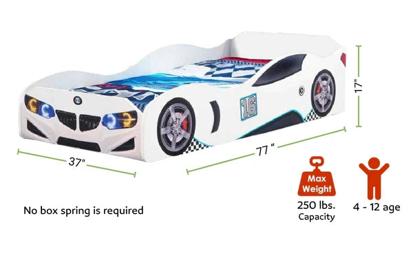 - The BEAMER S1 racing car bed is sure to transform any room into a fun and lively bedroom where dreams come true! It's perfect for any young child who loves cars, and it would make a great addition to any bedroom. With its bright colors and fun design, this bed is sure to be a hit with any child!
