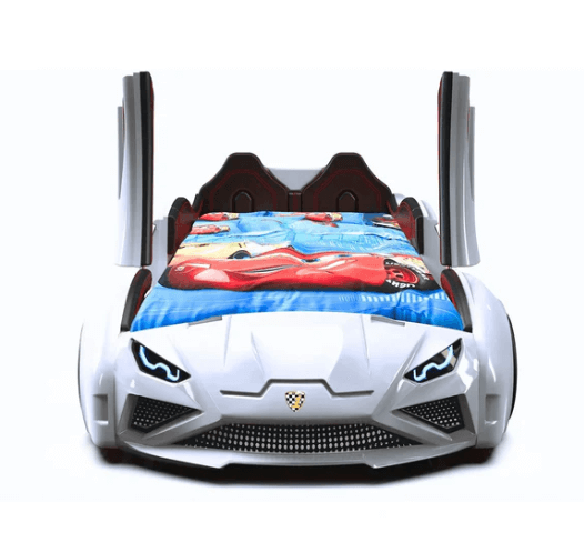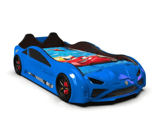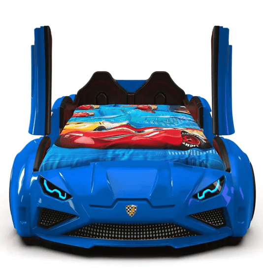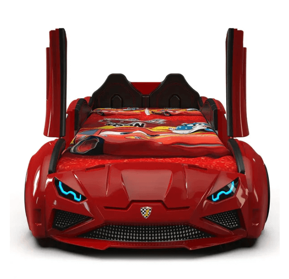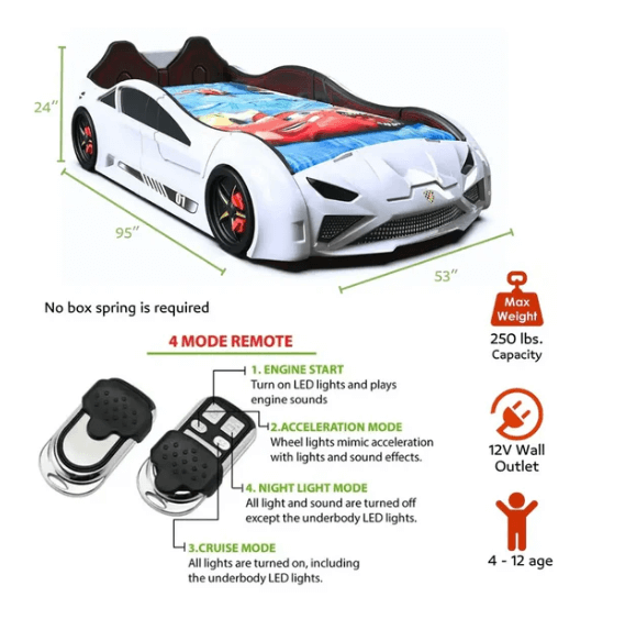 What separates our King Size Race Car Bed from the rest is its array of advanced features. The integrated LED lights, inspired by the aesthetic of real racing cars, illuminate the room and enhance the overall ambiance. Moreover, the Sound FX paired with LED lights takes the racing experience up several notches, making bedtime an exciting adventure.