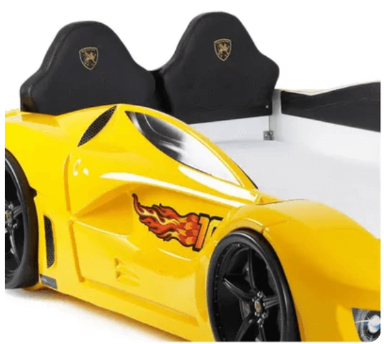 Make your child's bedroom a world of fun with this Moon Luxury racing car bed! They can easily get in and out of it without any assistance, and the raised sides prevent them from rolling off and ensure their safety. The detail on this bed is unrivaled, with realistic wheels that make it as close to a real sports car as you could possibly get.