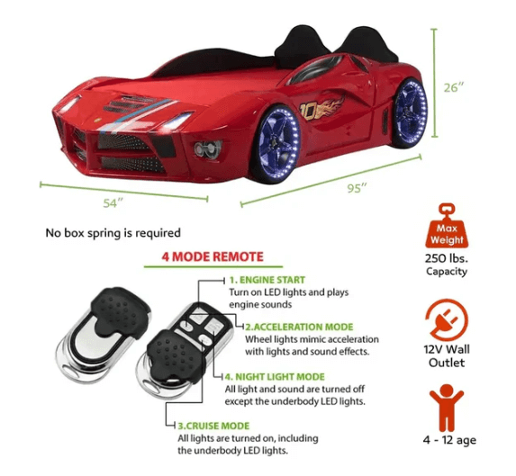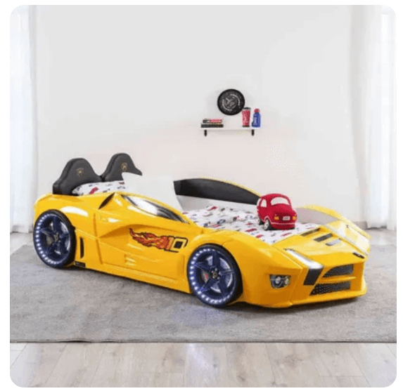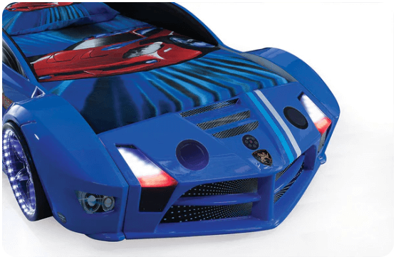 The MOON Luxury Twin King Size Race Car Bed is not just a bed; it's an adventure. Specially designed in the form of a sleek race car, this bed will ignite your child's imagination, transforming bedtime from a snooze-fest into a thrilling racing experience. Sporting incredible features such as shining LED lights and an immersive sound FX system, this race car bed ensures your child will look forward to sleep every night.