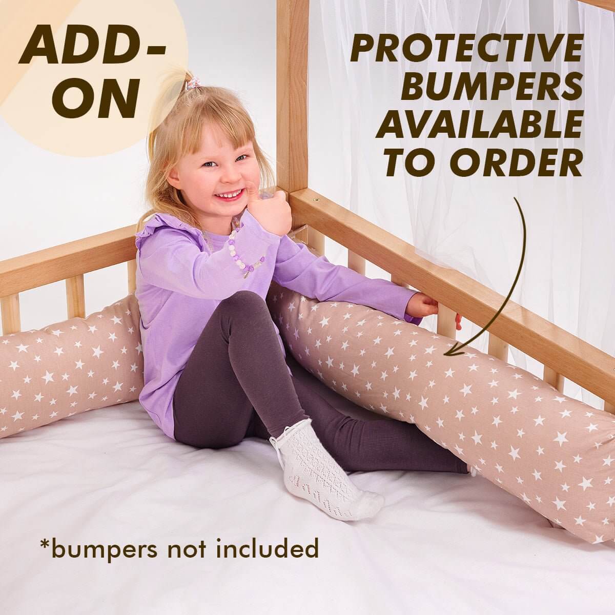 Goodevas floor beds for kids, inspired by Montessori concept, allow your child to feel comfortable and safe in their own space. Placed on the floor, these beds allow a child to get in and out easily, contributing to developing motor skills and independence. Lowered height of this bed minimizes the risk of traumas from falling and makes you feel calm about your child's safety.